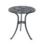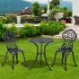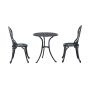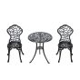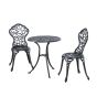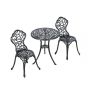 This outdoor bistro set is a great addition to any garden or patio, made with cast aluminum, and finished with a leaf design. The set comes complete with two chairs and a table ideal for any garden. This set is designed with the ability to be also used in balconies and porches with limited space. A great inviting piece of furniture for any garden, Patio and more.