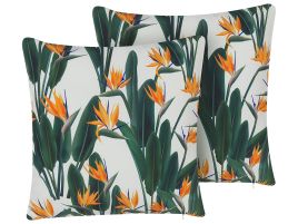 Set of 2 Outdoor Cushion Palm Leaf Motif 45 x 45 cm Multicolour GAIANA