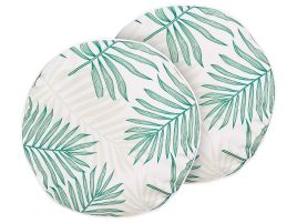 Set of 2 Outdoor Cushions Leaf Pattern ⌀ 40 cm Green and White CALDERINA