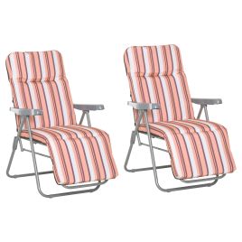 Set of 2 Garden Sun Lounger Outdoor Reclining Seat Cushioned Seat Foldable Adjustable Recliner Orange and White