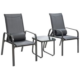 3 Pieces Patio Bistro Set with Coffee Table and 2 Stackable Chairs-Grey