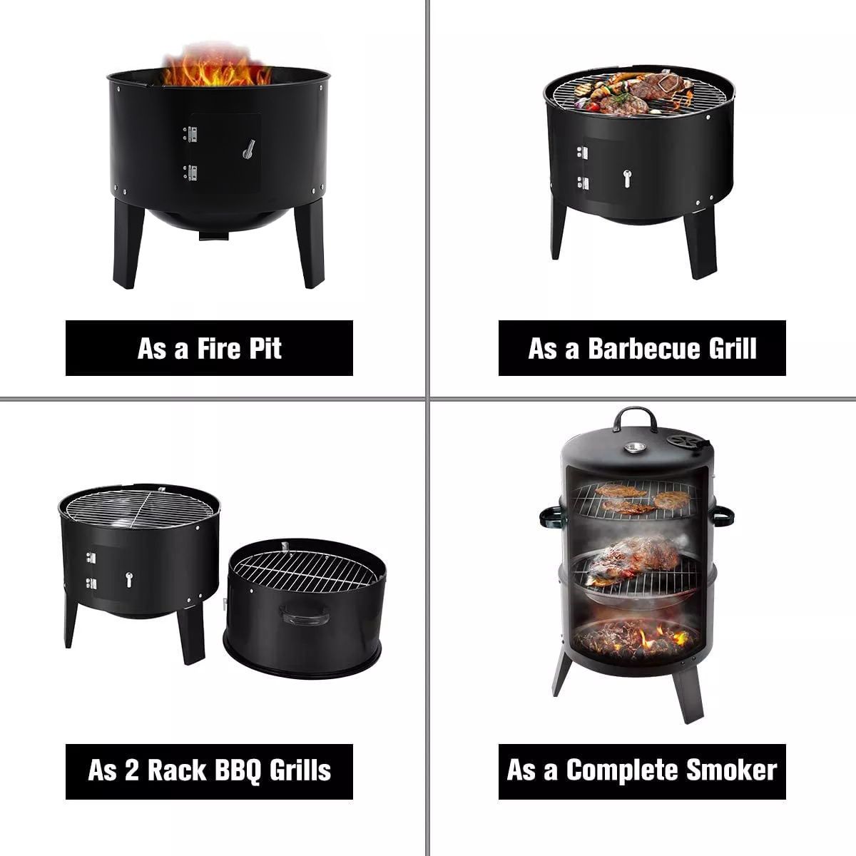 The shape of the round charcoal grill is unique. It is a small and practical design that looks great in the center of your garden! This oven occupies a small space, you can easily disassemble them for transportation and cleaning, or you can easily put it in the trunk. It is very suitable for enjoying barbecue time with relatives and friends and enjoying the happiness brought by food. This will allow you to have a common good memory and enhance your relationship. Small and versatile, it can be used a fire pit, a grill, two grills or a smoker.Suitable for outdoor, party, garden, terrace.