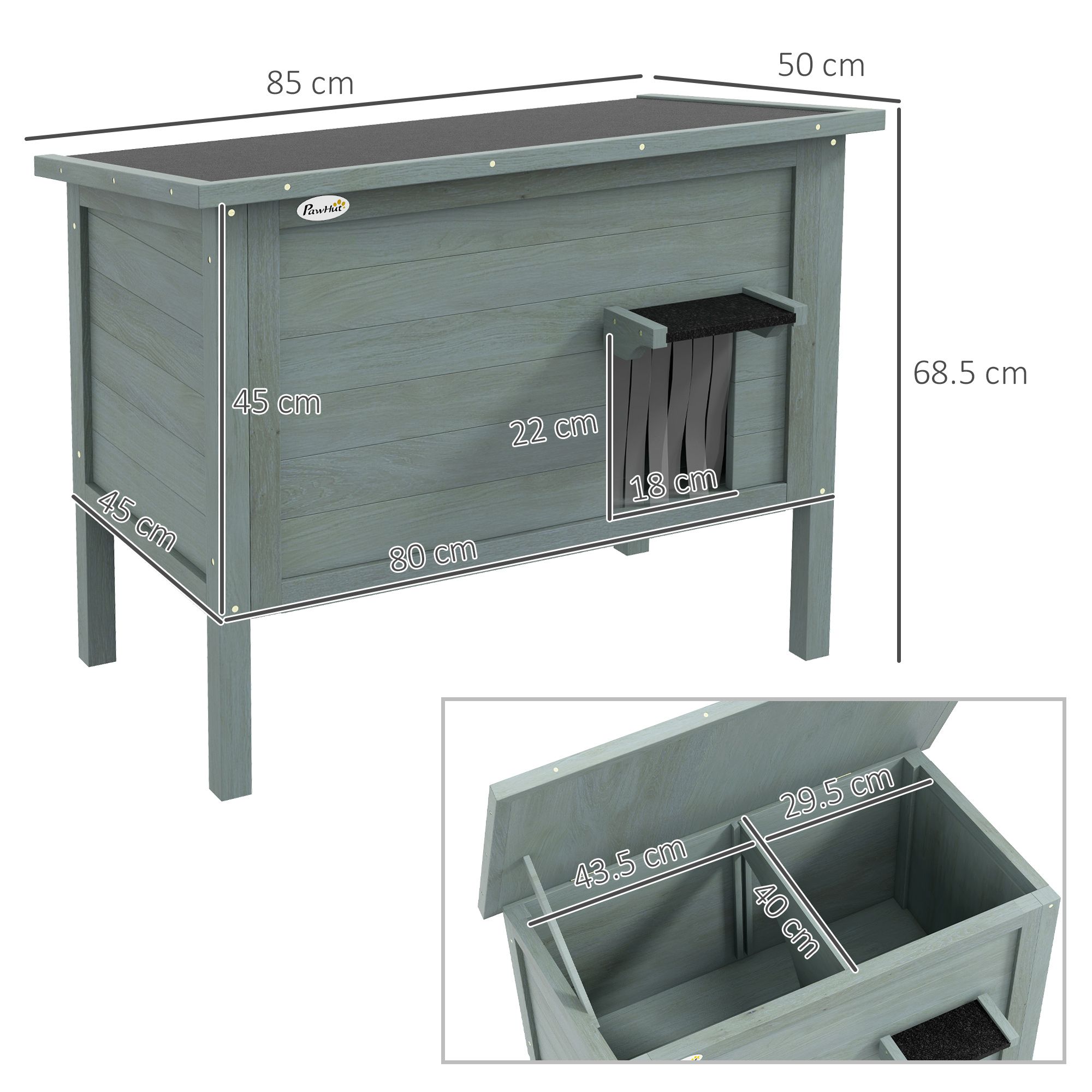 Outdoor Cat House Wooden Insulated with Removable Floor, Waterproof Openable Roof -Â Charcoal Grey
