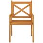 These wooden outdoor dining chairs are undoubtedly a great choice for al fresco dining in your garden and patio. Solid acacia wood: Solid acacia wood is a beautiful natural material. Acacia wood is a tropical hardwood, which is dense, sturdy, and durable.Practical armrests: The armrests of these dinner chairs add more comfort while sitting.Stylish design: These chairs, featuring a cross design of the backrest and a slatted design of the seat, are meant to be the focus of your space. Note:In order to extend the life of your outdoor furniture, we recommend you to clean it regularly and do not leave it outdoors without protection unnecessarily. Clean: Use a mild soap solution.Storing: If possible, store in a cool, dry place indoors. If the product is stored outdoors, protect it with a waterproof cover. Wipe and dry the excess water or snow from flat surfaces after a rain or snowfall. Allow sufficient air circulation to avoid moisture-related damage.