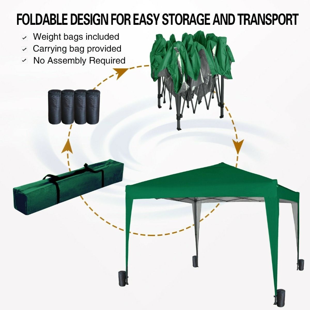 - Durable Water Proof 300 Denier Top with silver lining which brightens up the inside of gazebo and adds to better waterproofing