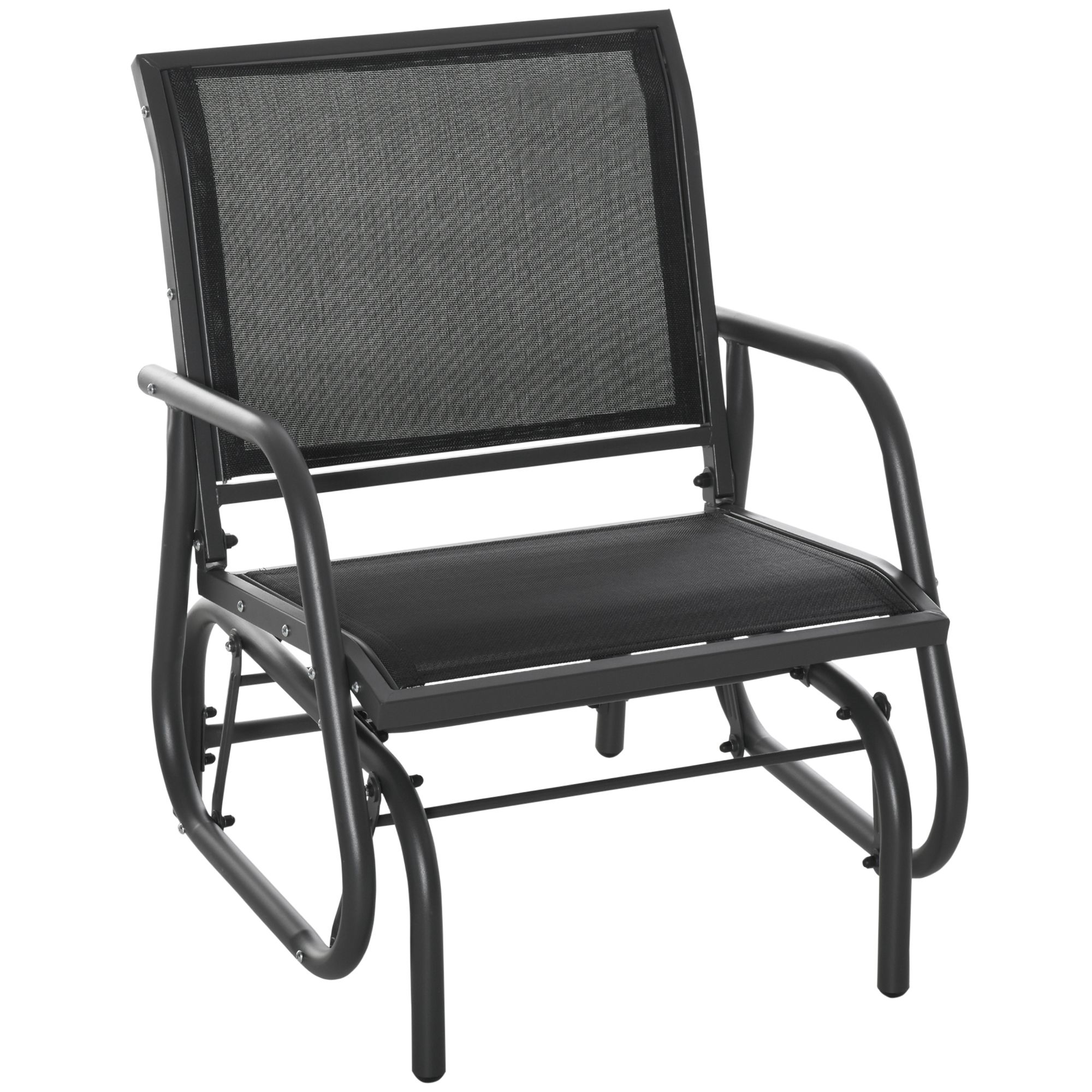 Outdoor Gliding Swing Chair Garden Seat w/ Mesh Seat Curved Back Steel Frame Armrests Comfortable Lounge Furniture Dark Grey Black