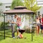 Outdoor Grill Gazebo Double Tiered BBQ Canopy Tent with 2 Side Shelves-Brown