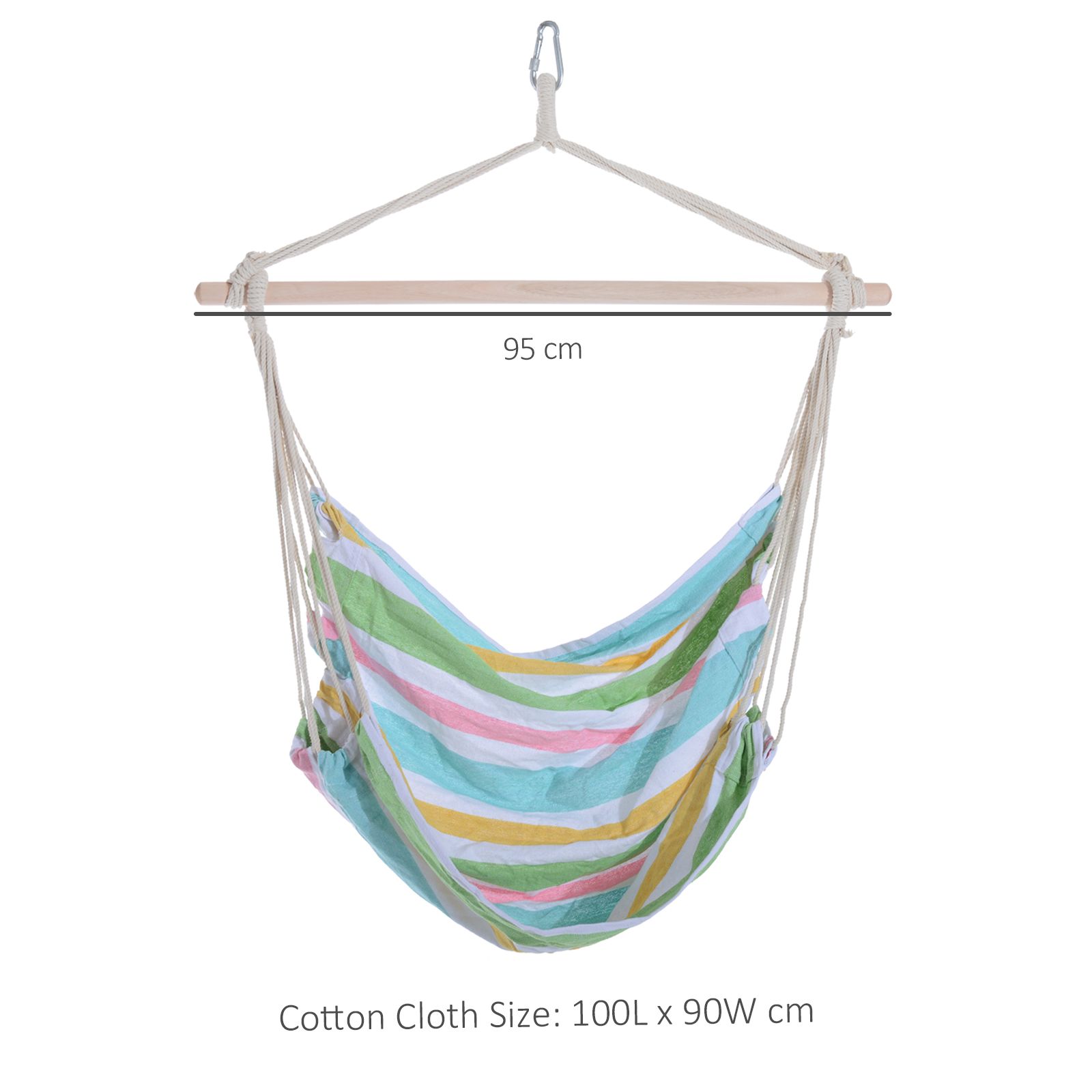 - Cotton Cloth Size: 100L x 90W (cm). NOTE: STRAP IS NOT INCLUDED FOR ATTACHING THE SWING SEAT TO A TREE