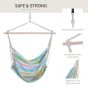 Sit back, relax and enjoy stylish outdoor lounging with the's hanging hammock chair! Made from the durable, breathable cotton material, it will offer you years of enjoyment. With wood stretcher thorough the swings chair to keep the chair stable! Relax outside and enjoy the fresh air with our garden swing hammock!