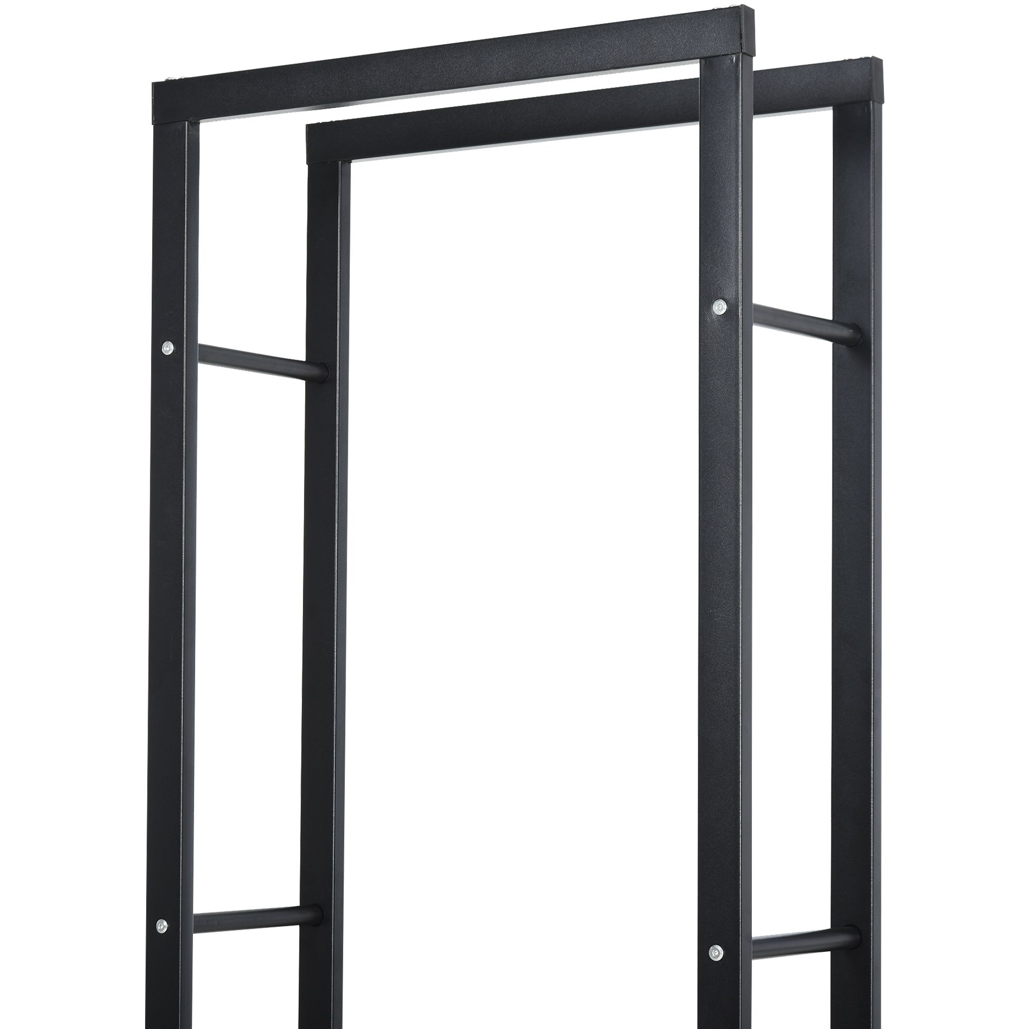 Outdoor Metal Firewood Log Holder Rack Double Tier with Balanced Base Side Rails - Black