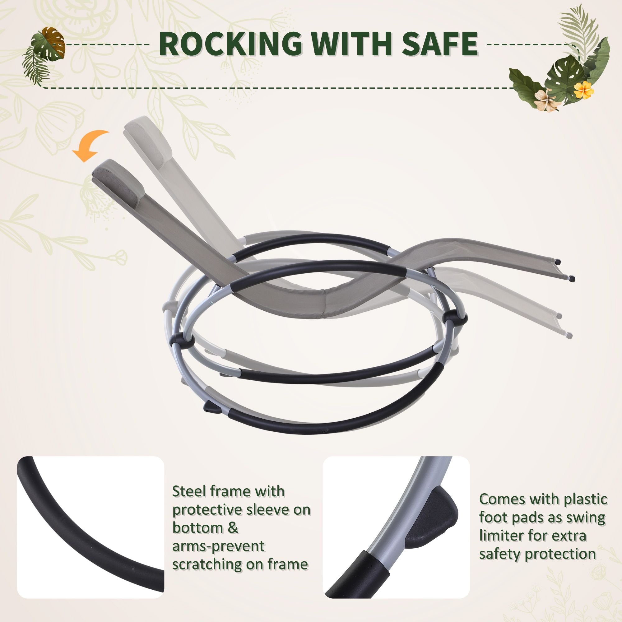 Outdoor Orbital Lounger Zero Gravity Patio Chaise Foldable Rocking Chair w/ Pillow Grey