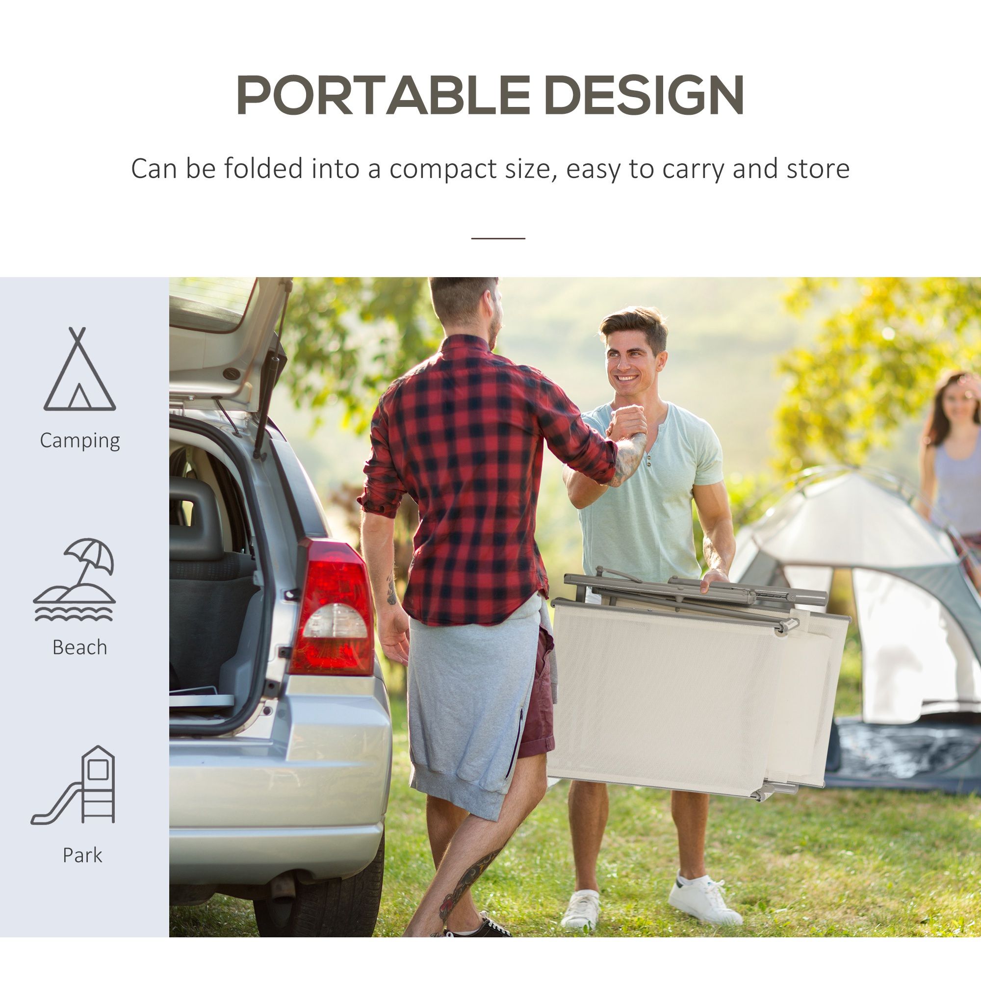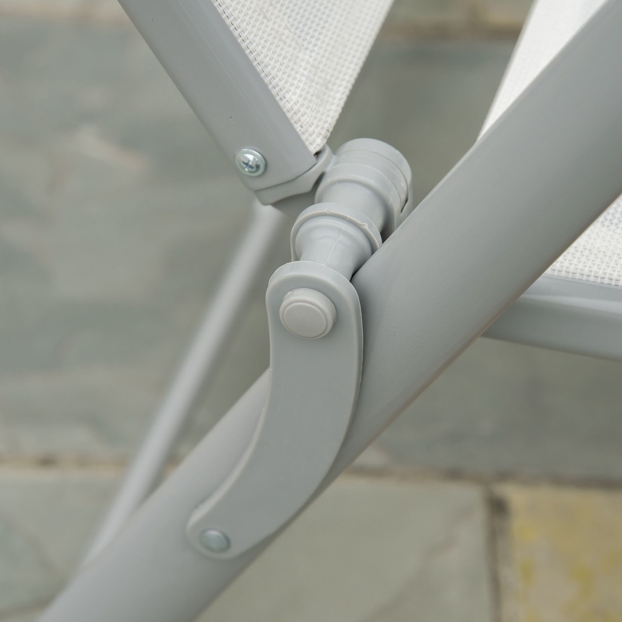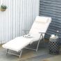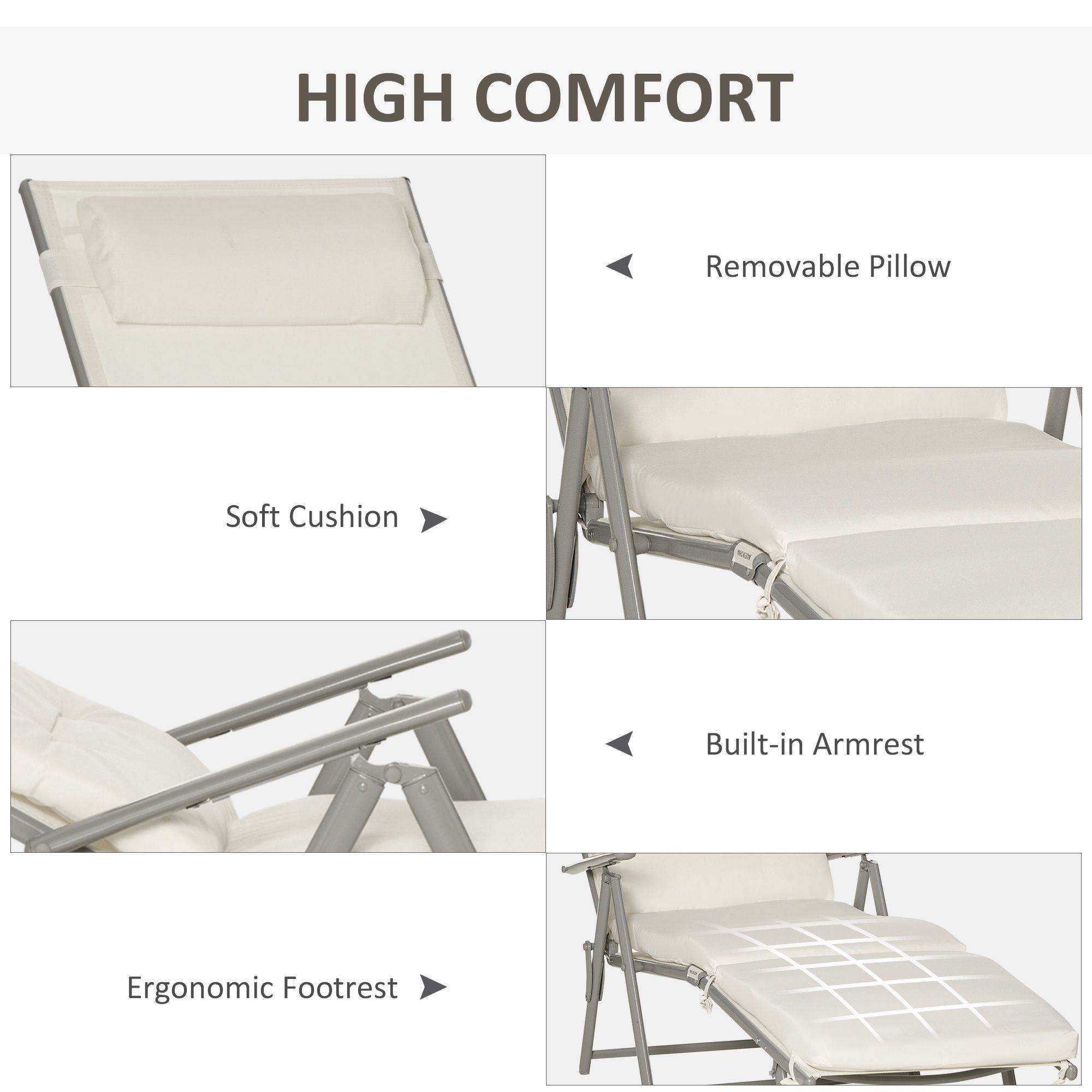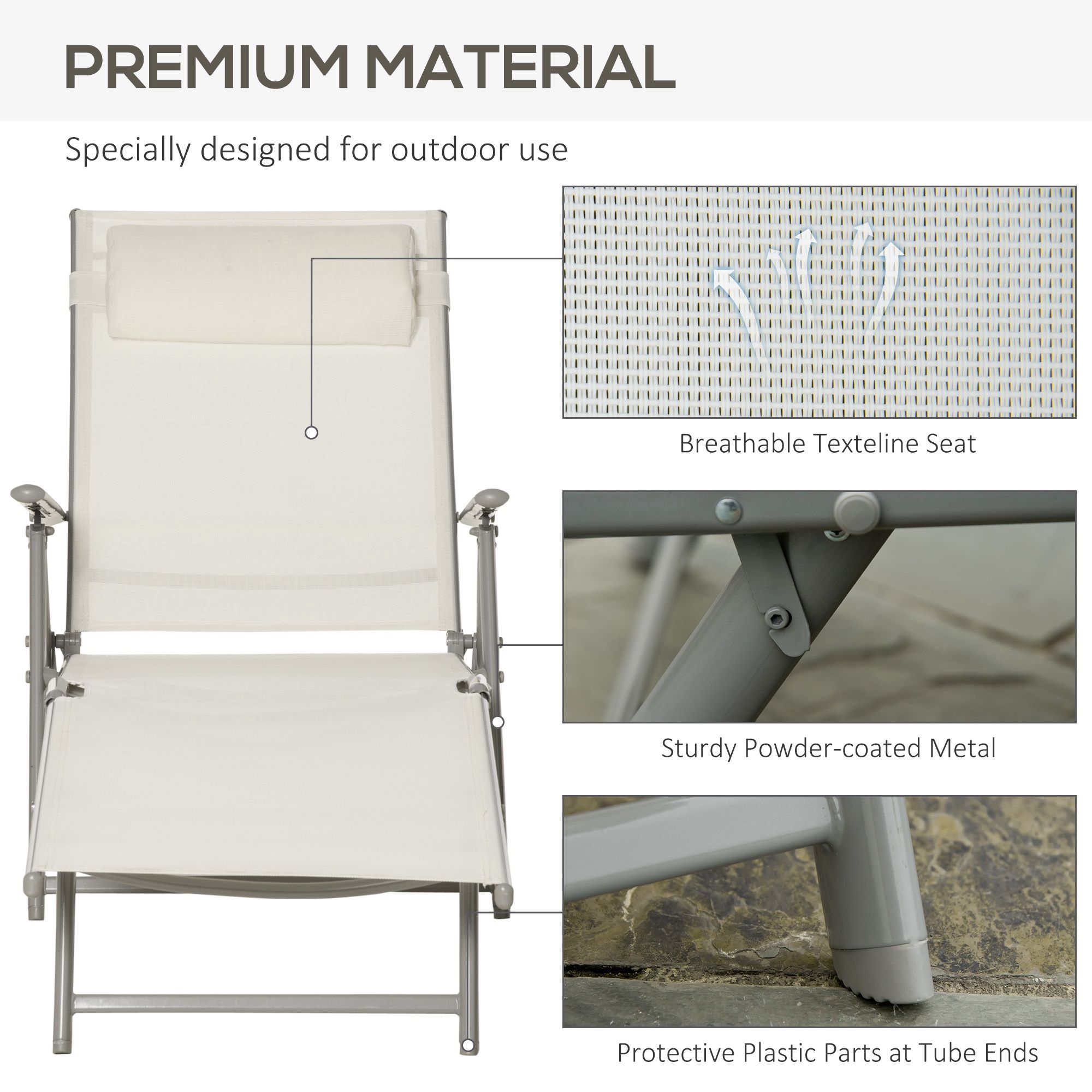 Outdoor Patio Sun Lounger Garden Texteline Foldable Reclining Chair Pillow Adjustable Recliner with Cushion - Cream White
