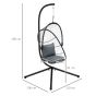 Outdoor PE Rattan Swing Chair with Cushion, Foldable Basket Patio Hanging Chair with Metal Stand, 360deg Rotation Spring Hook, Basket Height Adjust with Metal Chain, Grey