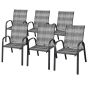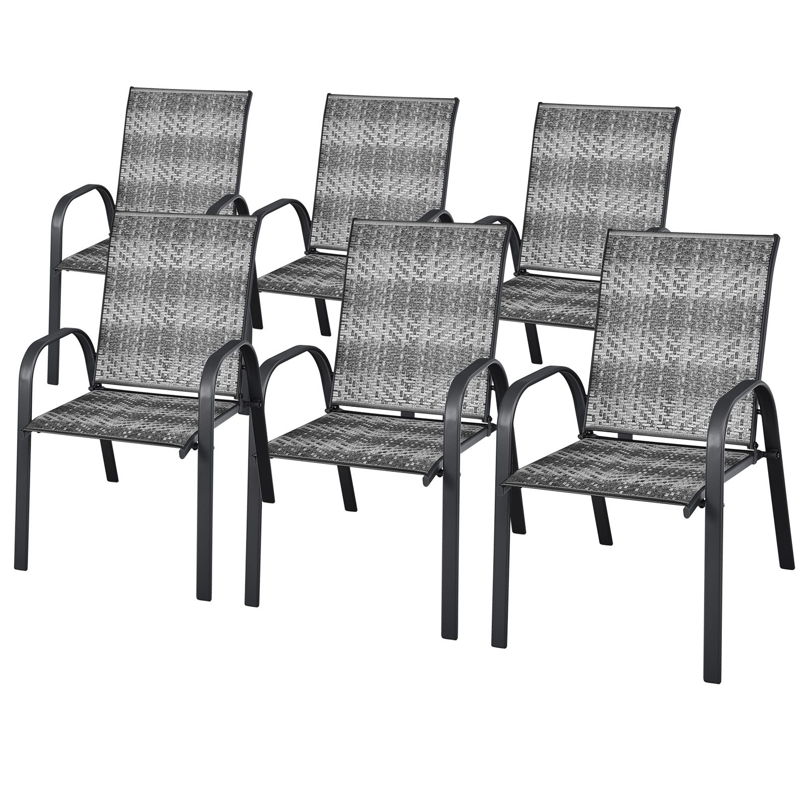 Enjoy a great family dinner with this patio dining chairs! There are 6 chairs in total that are ideal for family gatherings or friend parties. The weather-resistant machine woven PE rattan is selected for more accent outlook, higher density and longer use. At the same time, the steel frame is powder coated for rustproof, which ensures high durability for outdoor use. The reinforced bar and the non-slip foot pads brings strong stability. There are wide and deep backrests and seats as well as smoothly curved armrests for resting your back, spine and arms. Additionally, this patio dining chair set has an elegant appearance that matches many places well. After finishing outdoor gatherings, you can stack them together for space-saving. All-weather PE Rattan: Considering the changing weather, these outdoor dining chairs are crafted with high quality mix brown/mix grey PE rattan that is weather-resistant, fade-resistant, sun-protective and easy-to-clean. What's more, compared with other common PE wicker, we specially select the machine woven PE rattan, which is more beautiful and durable. Stackable Design: These patio armchairs can be stacked together when out of use, greatly saving your outdoor space (we recommend stacking no more than 3 chairs). Therefore, you can use these outdoor chairs on your patio, poolside, backyard and garden. And the suitable heights match your dining table (not included) perfectly. Comfy Sitting Experience: These 6-piece outdoor dining chairs are ergonomically designed with curved backrests and cozy armrests, which not only provide ultimate comfort for your back line, but also support your arms for relaxing and resting. And the deep seat brings enough space for better sitting experience. Sturdy Construction: Firmly supported by the sturdy powder coated steel frame with anti-rust surface and sturdy back support, these patio chairs are stable and durable enough to hold you steadily and safely. Moreover, the non-slip foot pads enhance extra stability while protecting the floor from being scratched. Worry-free Assembly: The detailed instruction will come with the patio dining chair set for simple installation. Please do not tighten all the screws until all the holes are aligned. Overall dimension of each chair: 70 x 55 x 90.5 cm (L x W x H). Please refer to the size description before purchase (there may be small dimensional discrepancies because of the manual measurement).