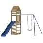 Do you want to give your children the freedom to play at home? This wooden outdoor playset transforms your backyard into a playground for imaginative adventures! Impregnated wood: This garden climbing frame is made of vacuum pressure impregnated pinewood. Solid pine wood is a beautiful natural material. Pine wood has a straight grain, and the knots give the material its signature, rustic look. Impregnation is a preservation process that is carried out by using autoclaves. The pressure-treatment increases resistance to decay and weather.Sturdy and stable frame: The wooden frame of the playset ensures sturdiness and stability. In addition, the "A" shaped legs of the children's swing allow for balance.Multi-activity centres: The climbing frame features a 90 cm height platform and stands out with its rockwall, a wave slide, a single swing set as well as a sandpit. Your little ones can also invite their friends to join the fun.Thoughtful design: The surrounding wooden railings are designed to ensure the safety of children during their happy play. Also, the wooden roof provides shade for your children on hot summer days.Endless fun: This fun-filled garden playset is the perfect way for your children and their friends to enjoy entertainment, have more interactive time and make memories for you and your children! Warning:Only for domestic useOutdoor useNot suitable for children under 3 yearsRecommend user age: 3-8 years old Maximum per user weight: 45 kg Note:The product shall be anchored in order to reduce tipping hazards. The anchors are sold separately. Good to know:To make assembly as easy as possible, each product is delivered with a manual.