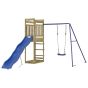 Do you want to give your children the freedom to play at home? This wooden outdoor playset transforms your backyard into a playground for imaginative adventures! Durable material: This playset is made of vacuum pressure impregnated pinewood. Solid pine wood is a beautiful natural material. Pine wood has a straight grain, and the knots give the material its signature, rustic look. Impregnation is a preservation process that is carried out by using autoclaves. The pressure-treatment increases resistance to decay and weather.Sturdy and stable frame: The wooden frame of the playground equipment ensures sturdiness and stability. In addition, the "A" shaped legs of the children's swing allow for balance.Multi-activity centres: The wooden playset features a 118 cm height platform and stands out with its wave slide, a single swing set as well as a sandpit. Your little ones can also invite their friends to join the fun.Thoughtful design: The surrounding wooden railings are designed to ensure the safety of children during their happy play.Endless fun: This fun-filled wooden playground is the perfect way for your children and their friends to enjoy entertainment, have more interactive time and make memories for you and your children! Warning:Only for domestic useOutdoor useNot suitable for children under 3 years Recommend user age: 3-8 years oldMaximum per user weight: 45 kg Note:The product shall be anchored in order to reduce tipping hazards. The anchors are sold separately.