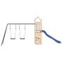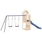 Do you want to give your children the freedom to play at home? This wooden outdoor playset transforms your backyard into a playground for imaginative adventures! Durable material: This garden climbing frame is made of solid pine wood. Solid pine wood is a beautiful natural material. Pine wood has a straight grain, and the knots give the material its signature, rustic look.Sturdy and stable frame: The wooden frame of the climbing frame with slide ensures sturdiness and stability. In addition, the "A" shaped legs of the children's swing allow for balance.Multi-activity centres: The climbing frame features a 90 cm height platform and stands out with its rockwall, wave slide, a double swing set as well as a sandpit. Your little ones can also invite their friends to join the fun.Thoughtful design: The surrounding wooden railings are designed to ensure the safety of children during their happy play. Also, the wooden roof provides shade for your children on hot summer days.Endless fun: This fun-filled wooden outdoor playhouse is the perfect way for your children and their friends to enjoy entertaining time, have more interactive time and make memories for you and your children! Warning:Only for domestic useOutdoor useNot suitable for children under 3 yearsRecommend user age: 3-8 years oldMaximum per user weight: 45 kg Note:The product shall be anchored in order to reduce tipping hazards. The anchors are sold separately. Good to know:To make assembly as easy as possible, each product is delivered with a manual.