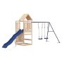 Do you want to give your children the freedom to play at home? This wooden outdoor playset transforms your backyard into a playground for imaginative adventures! Solid pine wood: This garden climbing frame is made of solid pine wood. Solid pine wood is a beautiful natural material. Pine wood has a straight grain, and the knots give the material its signature, rustic look.Sturdy and stable frame: The wooden frame of the playset ensures sturdiness and stability. In addition, the "A" shaped legs of the children's swing allow for balance.Multi-activity centres: The playground equipment features a 118 cm height platform and stands out with its rock wall, wave slide, a double swing set as well as a sandpit. Your little ones can also invite their friends to join the fun. Thoughtful design: The surrounding wooden railings are designed to ensure the safety of children during their happy play. Also, the wooden roof provides shade for your children on hot summer days.Endless fun: This fun-filled wooden playset is the perfect way for your children and their friends to enjoy entertainment, have more interactive time and make memories for you and your children! Warning:Only for domestic useOutdoor useNot suitable for children under 3 yearsRecommend user age: 3-8 years oldMaximum per user weight: 45 kg Note:The product shall be anchored in order to reduce tipping hazards. The anchors are not included.
