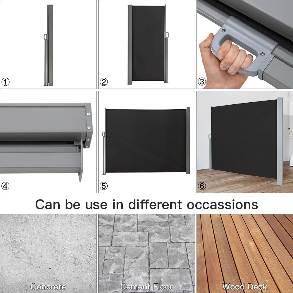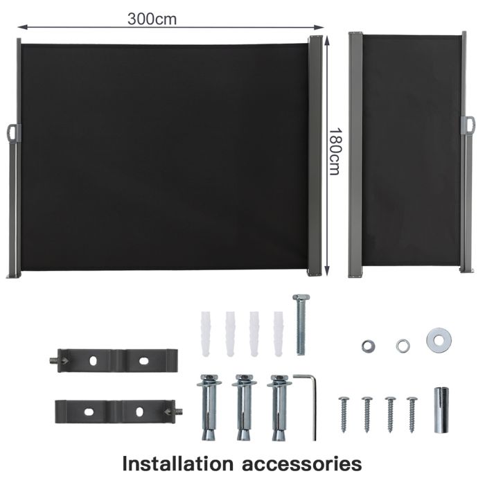 Creating a cool shade on your patio as well as protecting you from all those prying eyes? That’s what our professional side awning does. Rust-resistant frame, UV-resistant cover, this side awning promises you a long service life and a cozy afternoon. When there's a light breeze blowing or the sun shining down on your patio, you can pull out the awning and enjoy an undisturbed rest. The installation is quite simple too, the attached brackets ensure good stability.