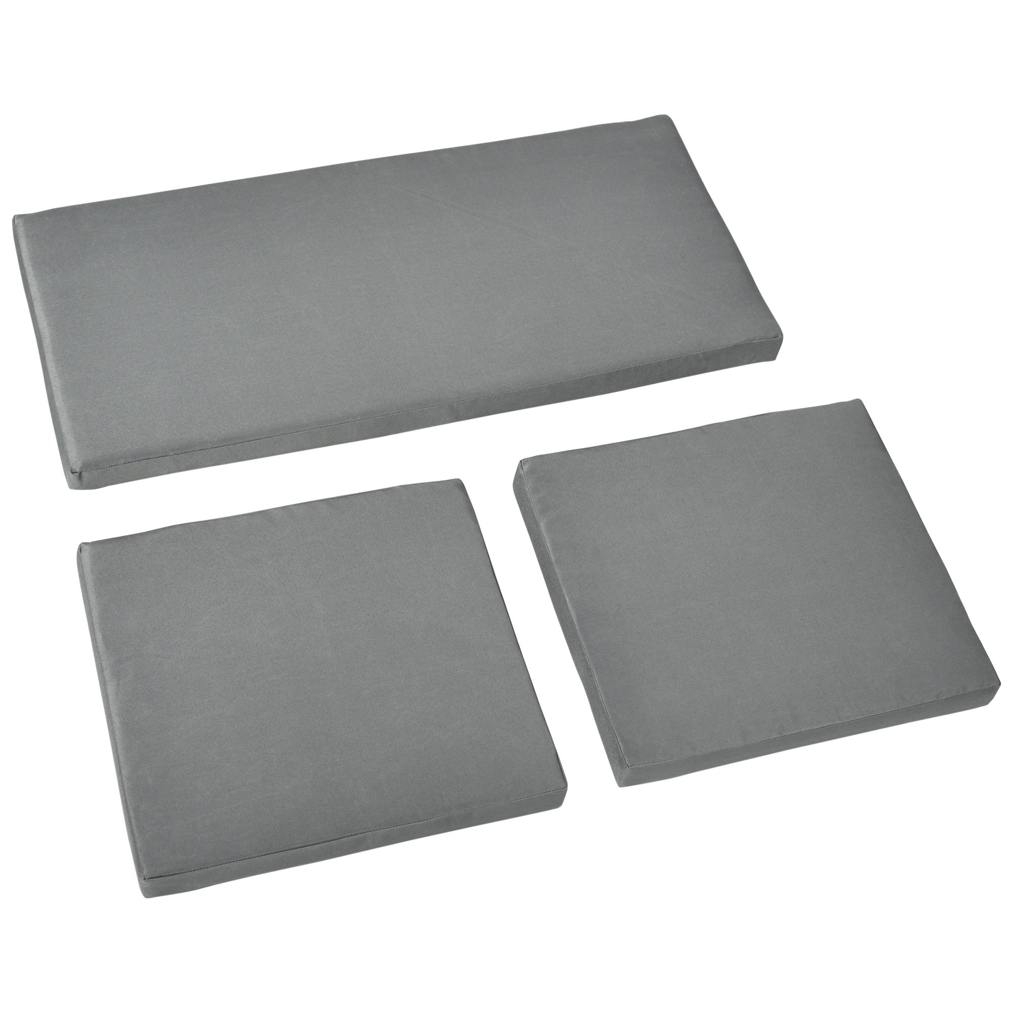 Outdoor Seat Cushion Pads for Rattan Furniture, 3 PCs Garden Furniture Cushions, Dark Grey