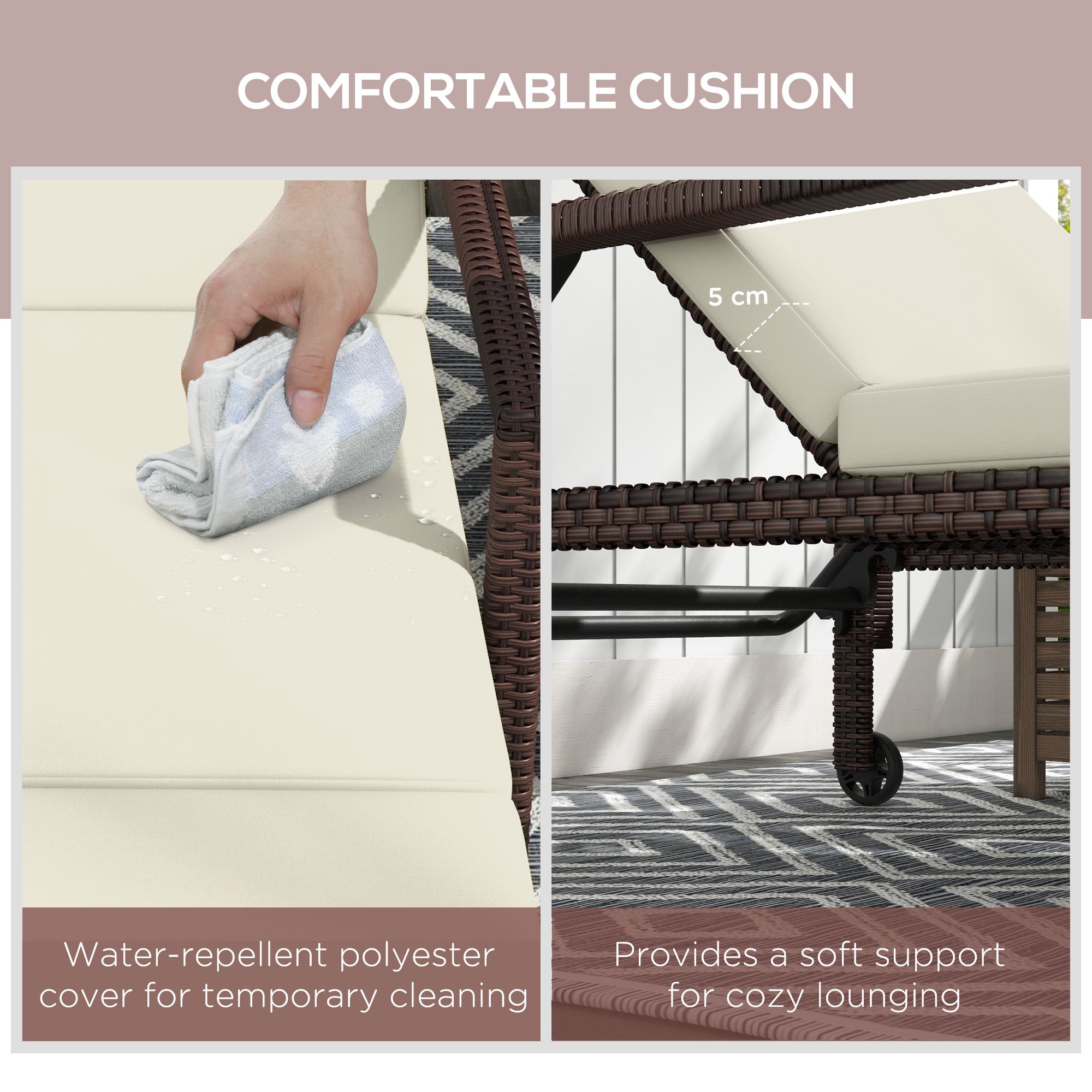 Outdoor Sun Lounger Rattan Recliner with Adjustable Backrest and Wheels