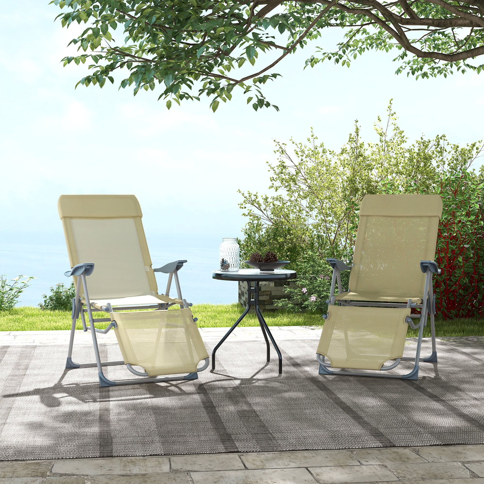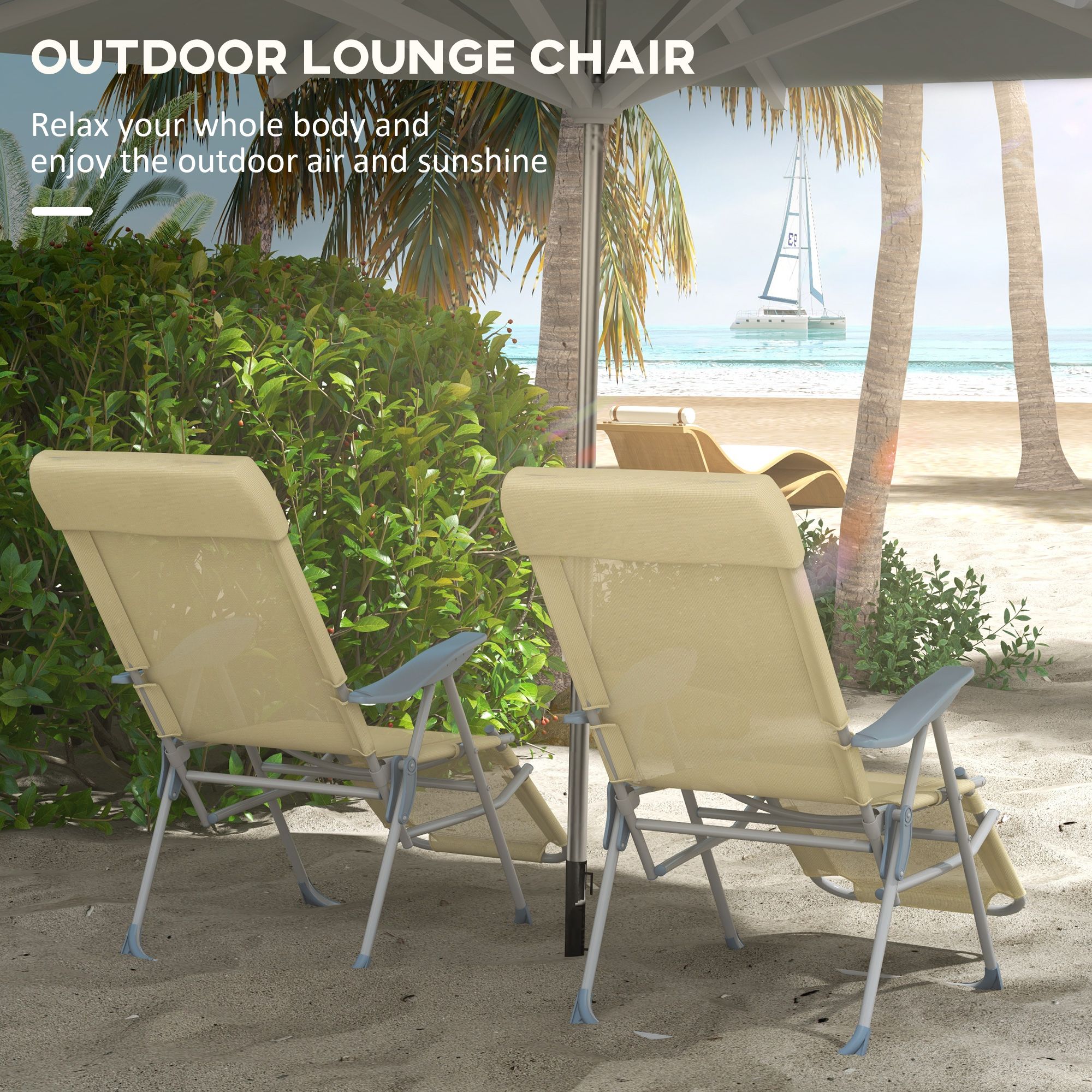 Outdoor Sun Lounger Set of 2, Reclining Garden Chairs w/ Adjustable Footrest, 2 pcs Recliner w/ 5-level Adjustable Backrest, Headrest, Beige