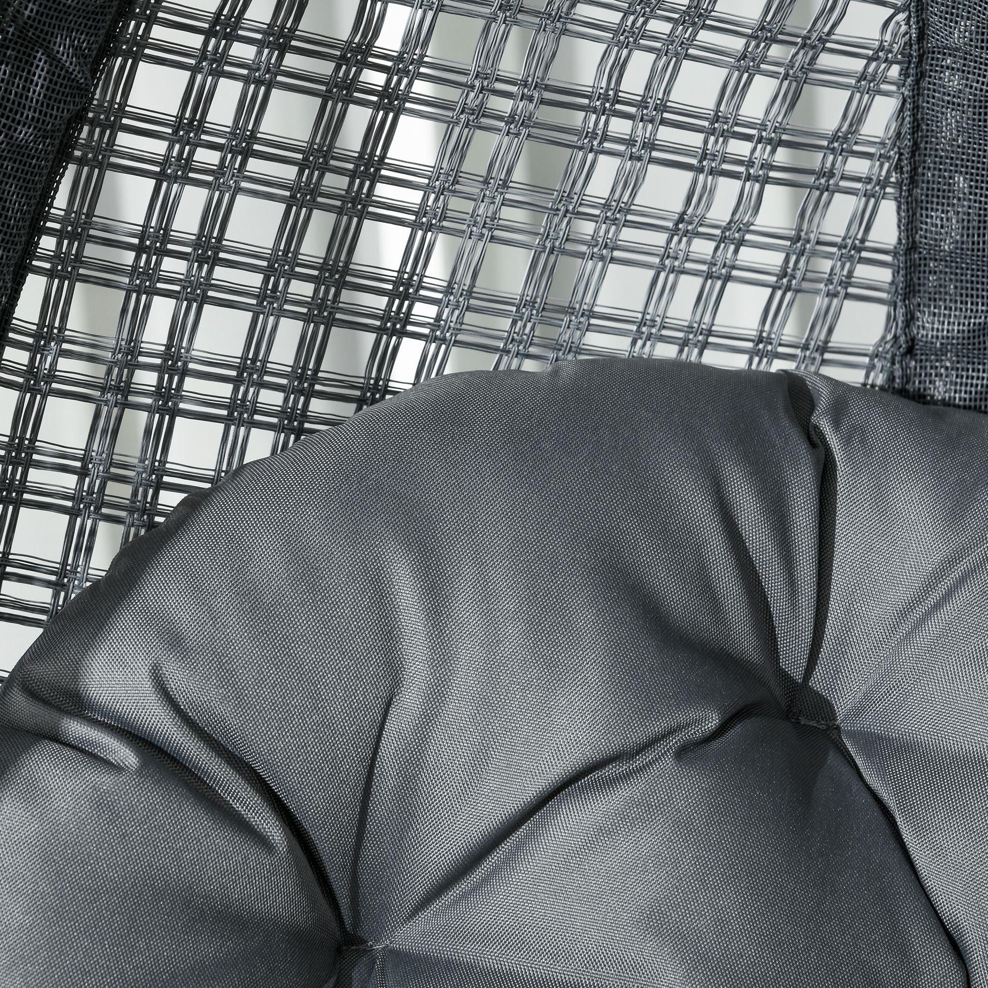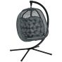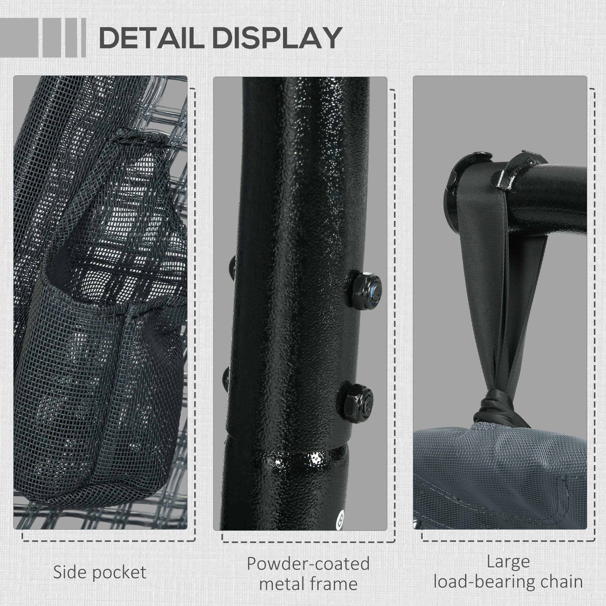 Outdoor Swing Chair w/ Thick Padded Cushion, Patio Hanging Chair w/ Metal Stand, Foldable Basket, Cup Holder, Dark Grey