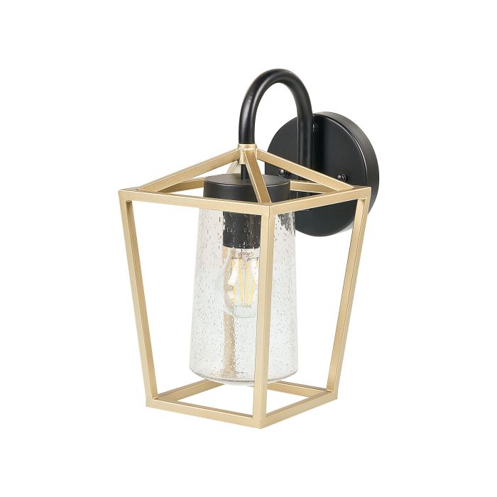 Enlighten your home surroundings with this outdoor wall lamp. Crafted from durable iron and adorned in a radiant golden hue, its sleek design exudes contemporary elegance. The harmonious fusion of iron and glass creates a captivating play of light, casting a warm and inviting glow. Illuminate your outdoor spaces with style and sophistication, making every evening a captivating experience. Details: Color: Gold, Black. Main material: Glass. Weight: 2 Assembly: Requires Installation