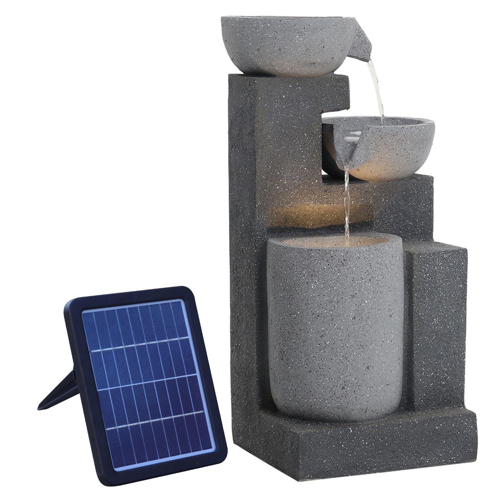 Outdoor Water Fountain Rockery Decor Solar Powered, Black