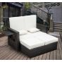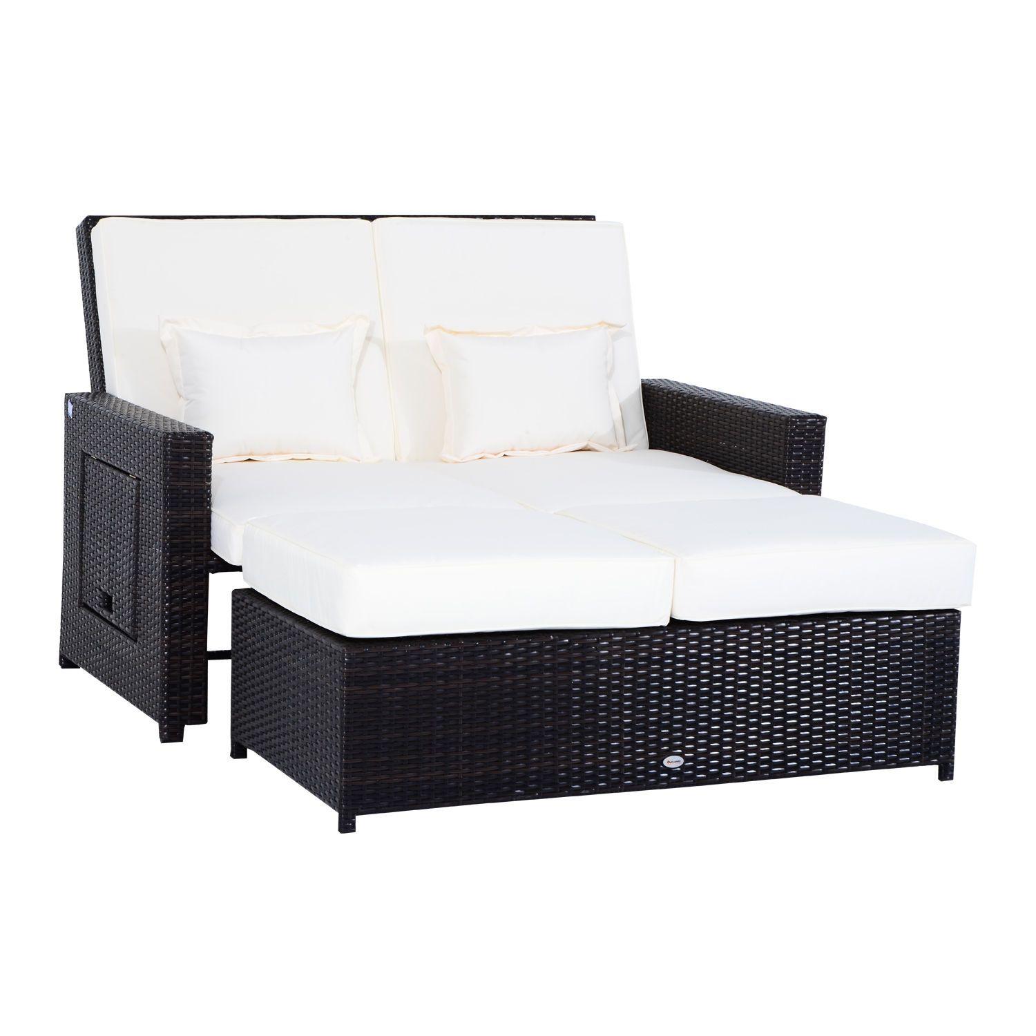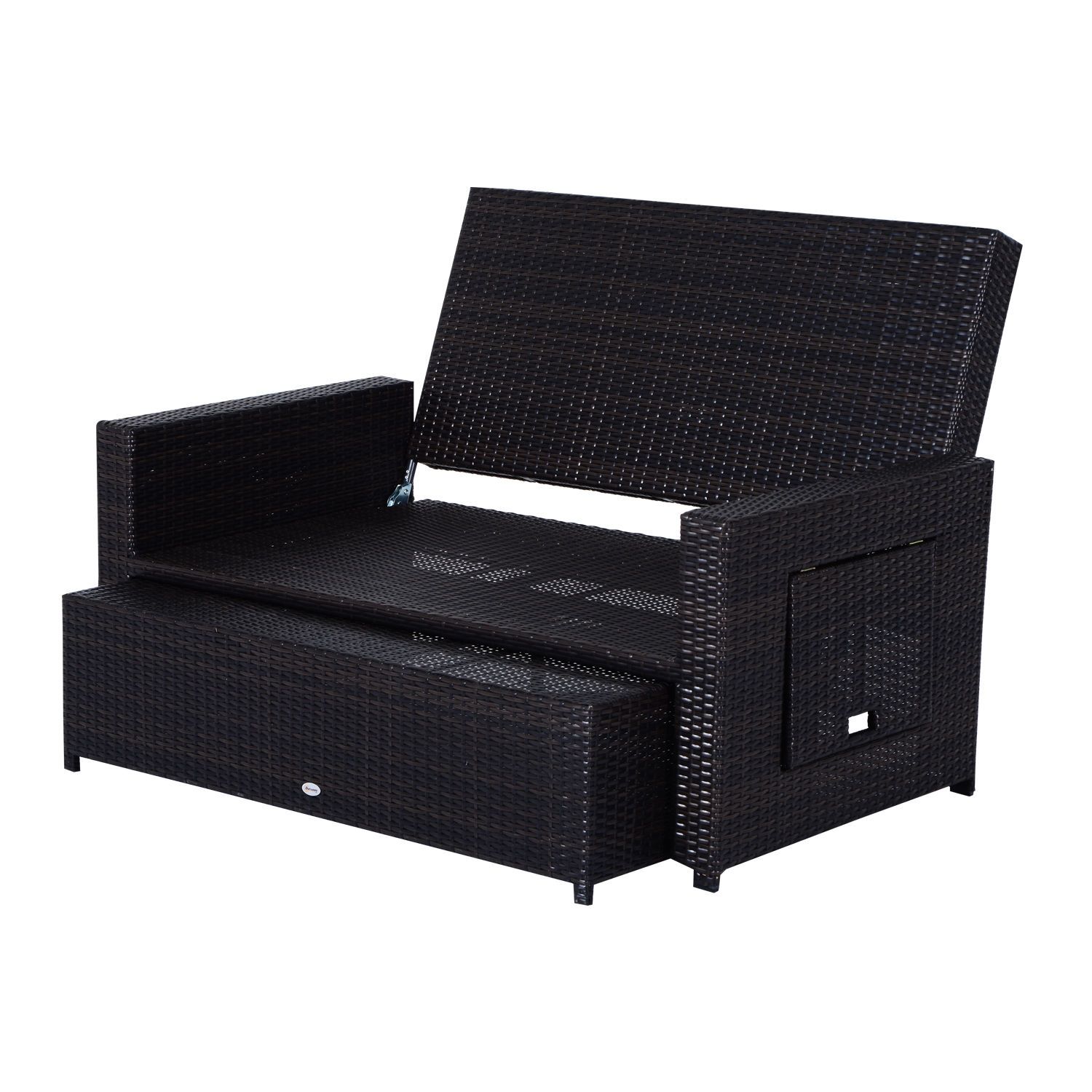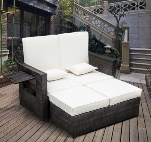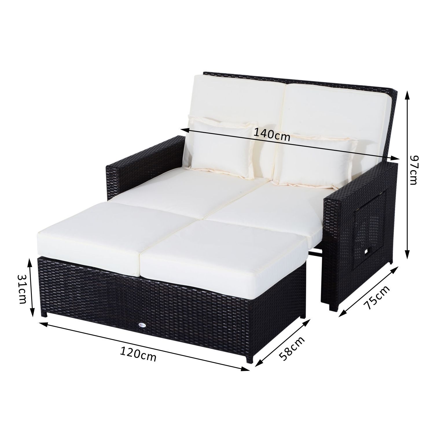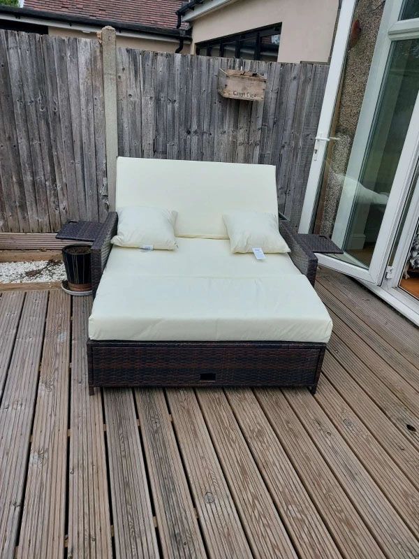 This 2 seat brown rattan day bed from is perfect for relaxing outdoors and enjoying the weather, or bring it inside for indoor use. Comfortably seating 2 people, with an integrated hinged side/drinks table and footrests which can be tucked away to save space. The chairs are made from a durable PE rattan which is fully weatherproof and UV resistant, allowing you to leave them outside all year round. Complete with soft padded cushions, which can easily be removed and cleaned.