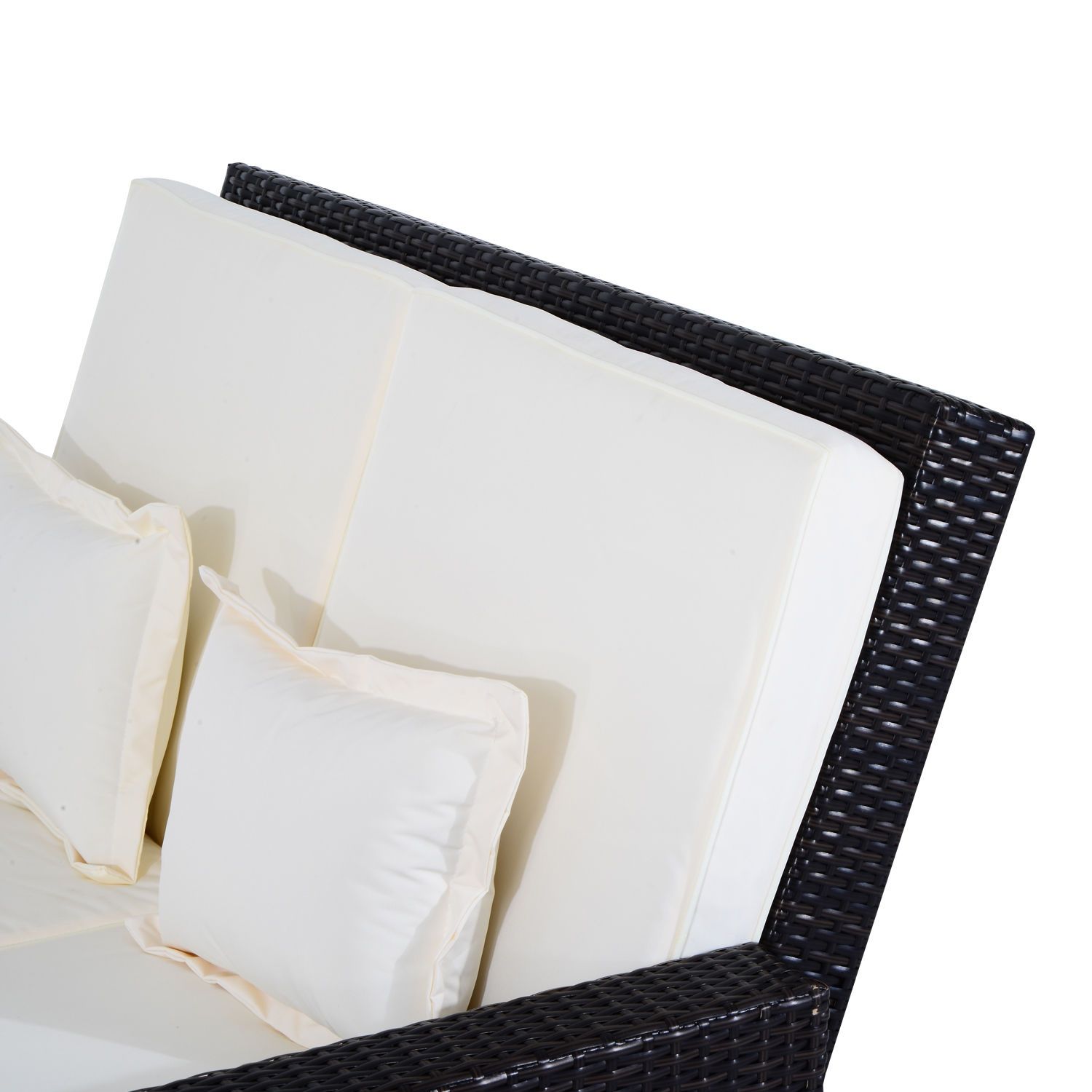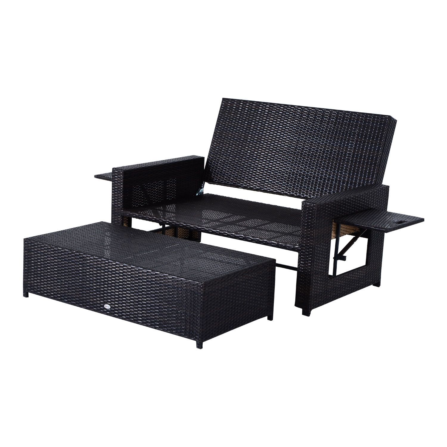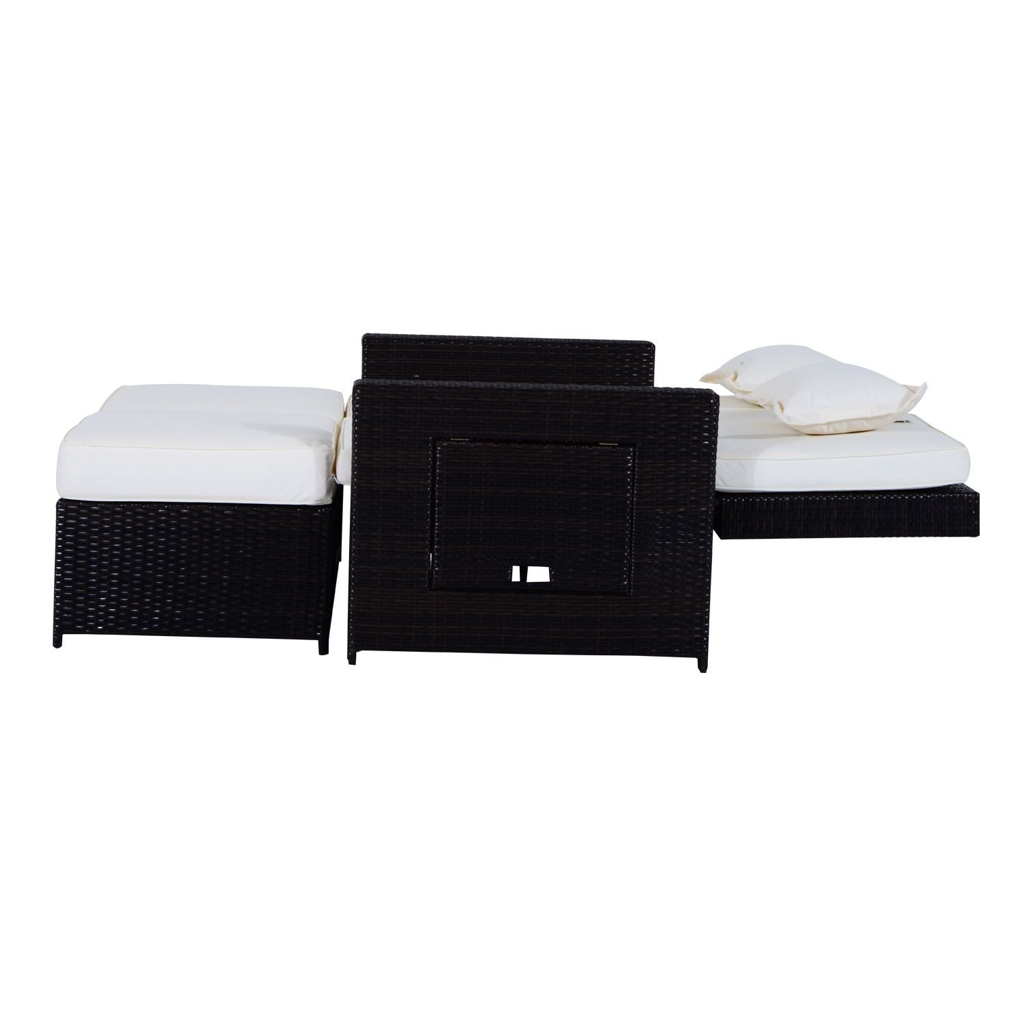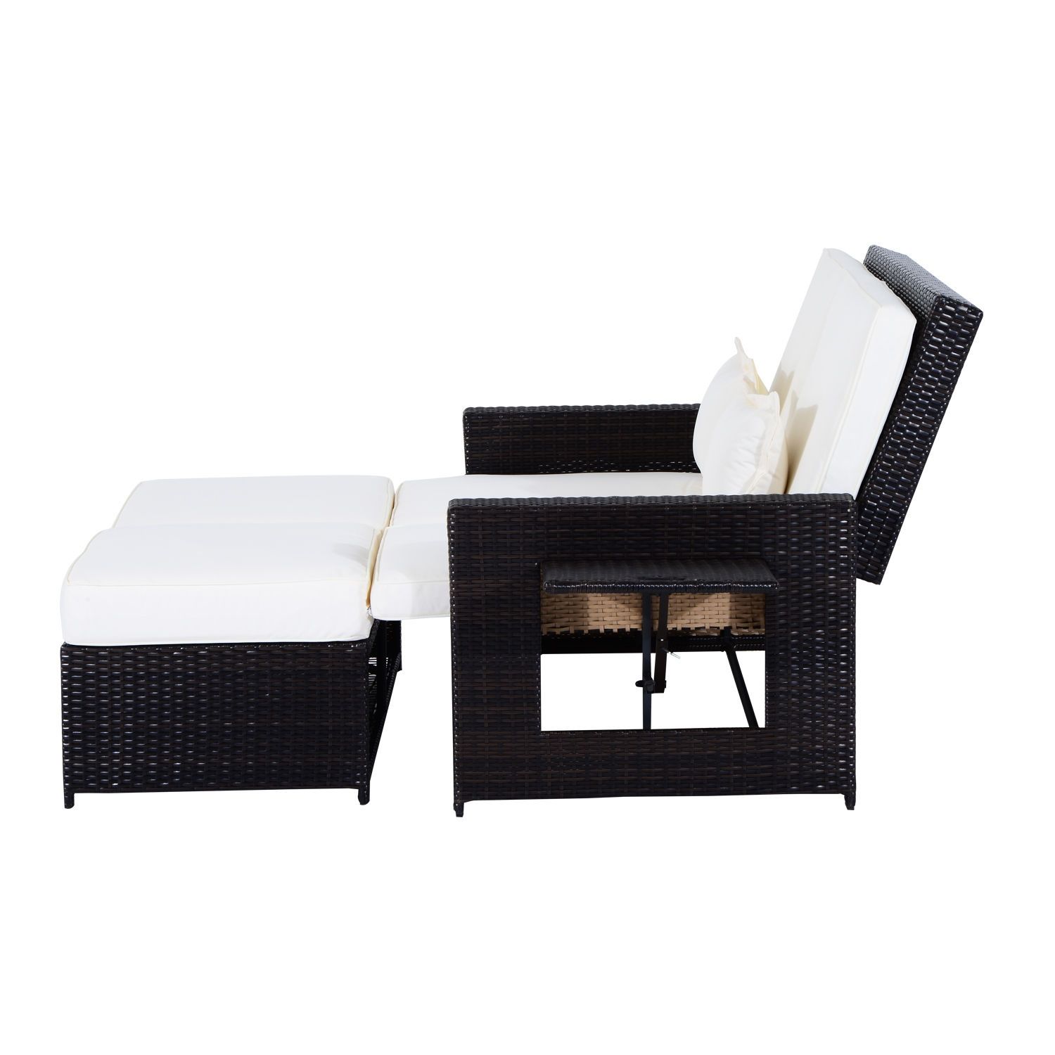This 2 seat brown rattan day bed from is perfect for relaxing outdoors and enjoying the weather, or bring it inside for indoor use. Comfortably seating 2 people, with an integrated hinged side/drinks table and footrests which can be tucked away to save space. The chairs are made from a durable PE rattan which is fully weatherproof and UV resistant, allowing you to leave them outside all year round. Complete with soft padded cushions, which can easily be removed and cleaned.
