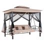 The 3 seater multi-functional swing chair from can be converted to a double hammock in seconds. With two 6cm-thick cushions, two soft pillows and two neck rolls included, it offers optimal comfort whether you are sitting or lounging. The 2-tier canopy top features water and wind resistant, while the removable zippered mesh curtains on all sides protect you against mosquitoes and allow for fluid air circulation. The sturdy steel construction with a 340kg weight capacity allows you to relax on the comfortable swing chair hammock with your loved ones and create the ideal leisure space.
