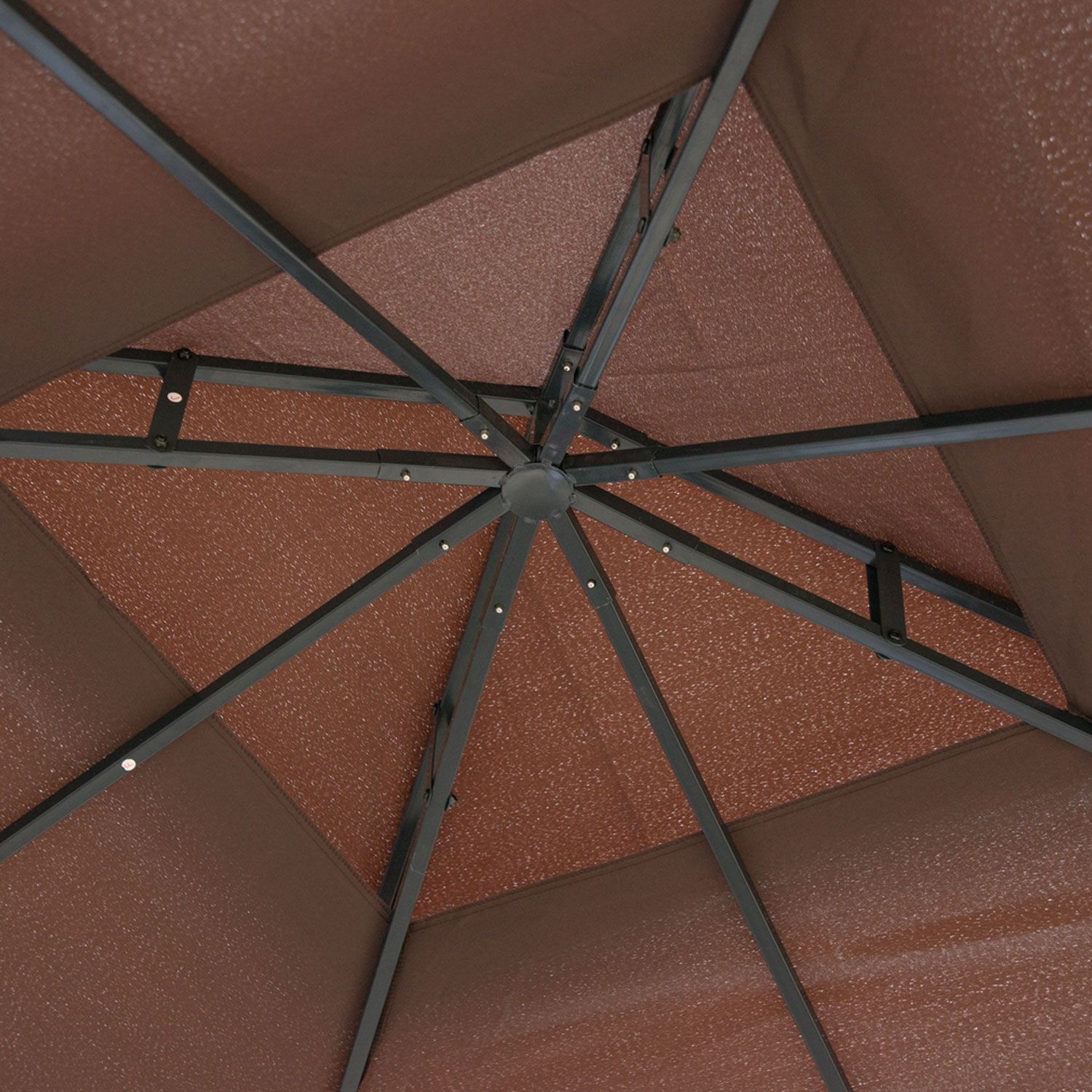 This 3x3m garden gazebo from is perfect for a variety of garden types. Constructed from a black powder coated steel with reinforced corners for extra stability and polyester fabric canopy. A UV coating makes the gazebo resistant to harmful ways and water or other weather elements, making it very durable and long lasting. The 2 tier canopy also allows for much better airflow management.