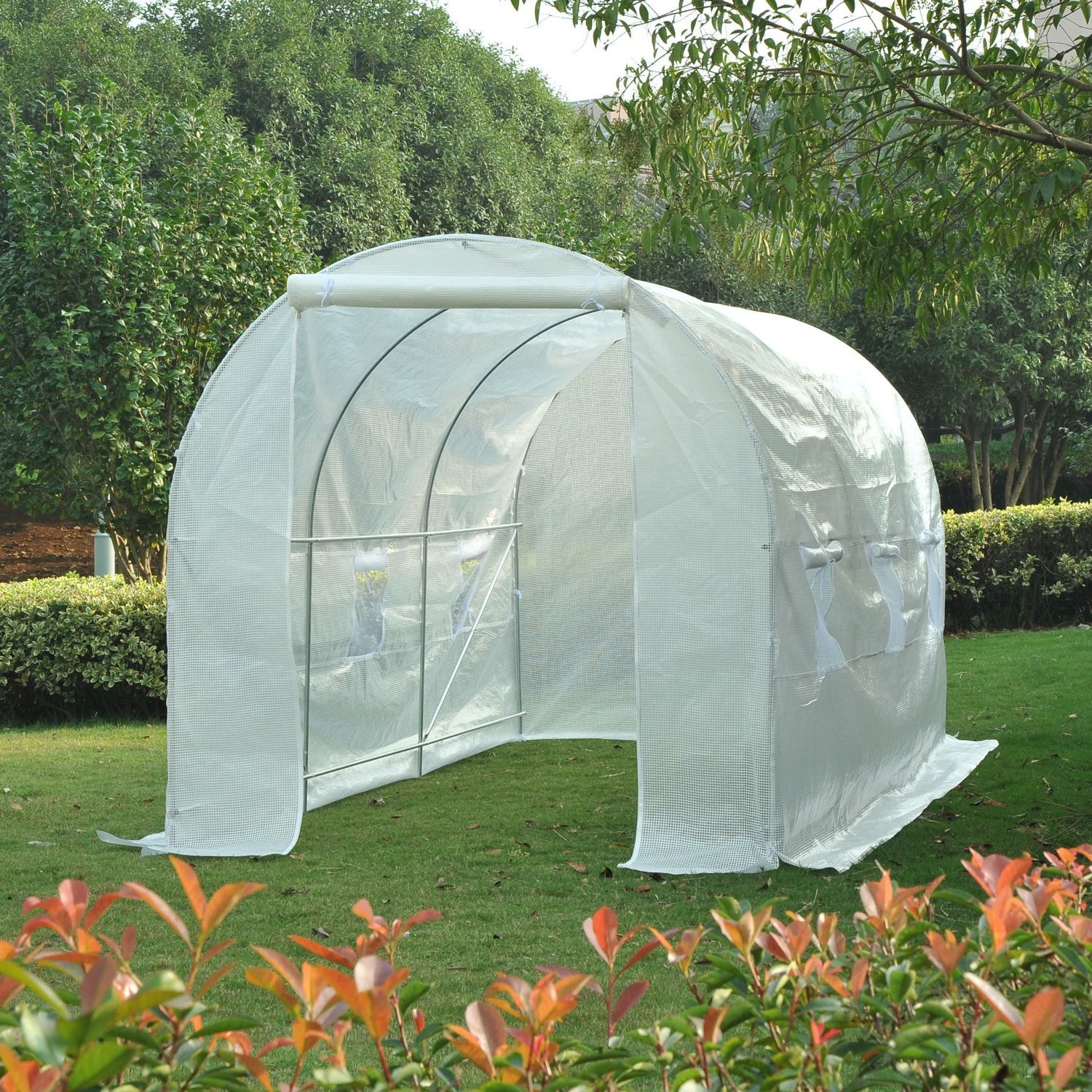 This 4.5 x 2 x 2m walk-in greenhouse is perfect for year-round gardening. Features a durable polyethylene covering with grid threading and a sturdy powder coated metal frame for long-lasting use. A large double zippered door makes for very easy getting in and out. Our greenhouse is great for seeding, or just to protect your young plants from the cold weather. This greenhouse design brings the protective surroundings that you need, without spending large amounts of money needed for a purpose built greenhouse.