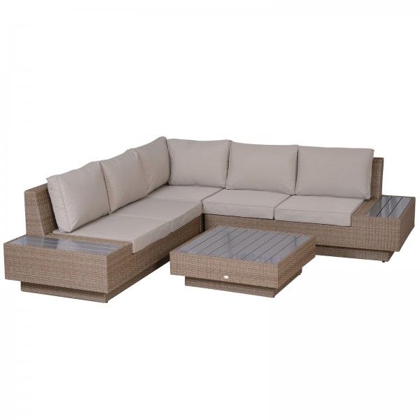 For an understatedly stylish and extremely comfortable garden and outdoor seating set, look to this luxurious four-piece Rattan set. Featuring two loveseats, a corner seat and a coffee table, you can arrange this set however you wish, making it completely flexible in how you want it to look. Built from PE rattan with a steel frame for support, each piece has been built to last to provide you years of use and the thick padded cushions ensure you’ll be relaxing comfortably for hours on end. It is finished with aluminium tops on the coffee table and small end tables, making them easy to clean and maintain. You’ll love inviting friends and family over when the sun comes out to shine.