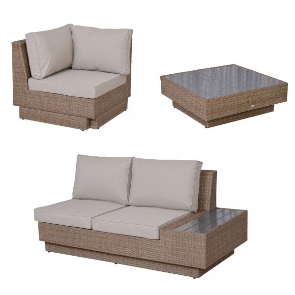 - Four-piece sofa set, includes two loveseats, one corner sofa and a coffee table