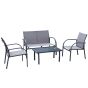 - Four-piece set, formed of a loveseat, two chairs and a matching table