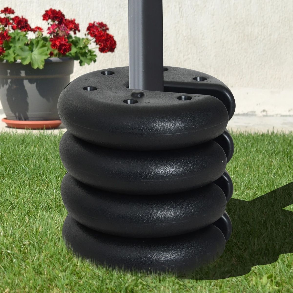 - Set of four disc shape weights for use with pop-up tents, gazebos and canopies