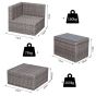 5 Pcs PE Rattan Armchair Footstool Set Tall Glass-Top Table Aluminium Frame - Grey
