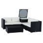 This rattan set is a great addition to your outdoor living space, ideal for conservatories, patio or paved seating area. The set consists of 2 corner seats, 2 single seats a side table and a coffee table. All seats come with backrest and seating cushions. The set is constructed using a metal frame and covered with PE rattan, it has been designed so that it can be placed in different combinations if required, also the side table and coffee table have the ability to store items. The set is stylish and modern in design and will match any outdoor decor, a great set to have for entertaining and relax in your outdoor space.