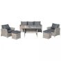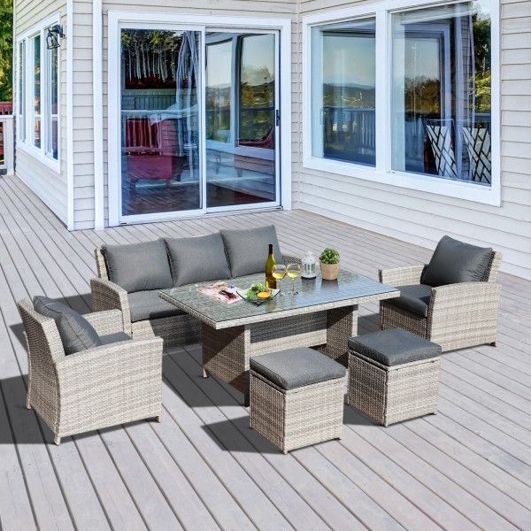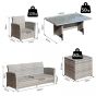 Ensure there’s plenty of sitting space outdoors for friends and family with this six-piece set. Made from hand woven PE rattan with a steel frame underneath, each piece has been built to last, providing solid and reliable use time and again. Including a three-seater sofa, two armchairs, two stools and a large table, it will accommodate up to seven people easily. With plush padded cushions all over, this set has been made with comfort in mind, allowing you to relax for hours on end and it is finished with a forever stylish tempered glass top on the table for easy maintenance.