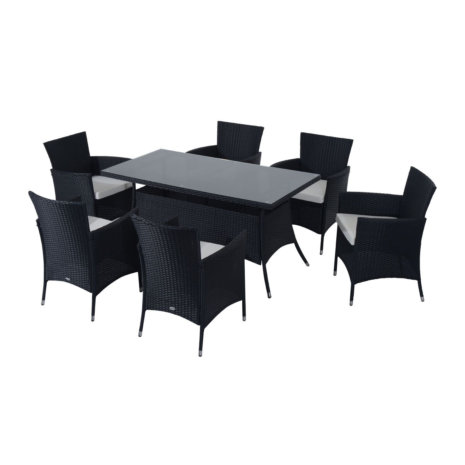 - Modern 7pc reconfigurable rattan set for optimum style and comfort. Includes: 6xChairs and 1 rectangular table.