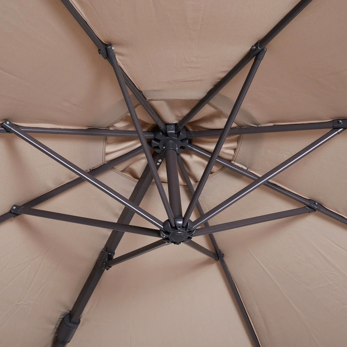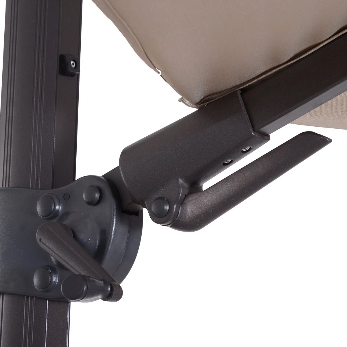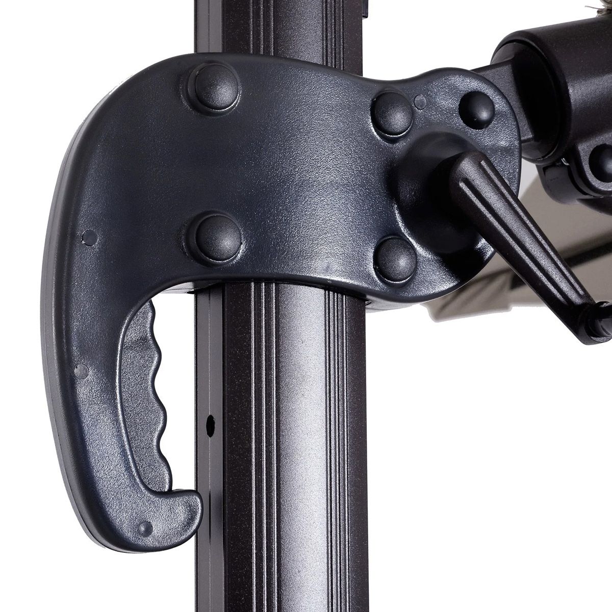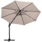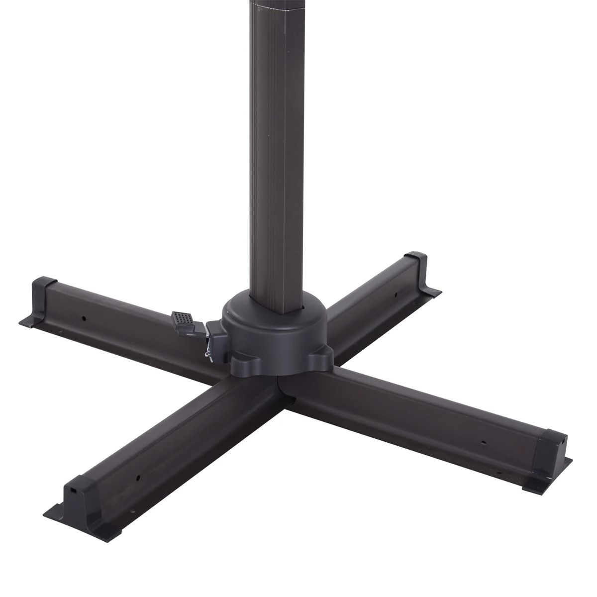 This Ousunny umbrella is a great solution for your outdoor living. With a large 3m x 5 m span it can cover a large area giving you enough shade from the sun. It is made from Steel and aluminium frame, using a cantilever system. The angle can also be adjusted by raising and lowering, with the the ability to open and close the umbrella by using the crank handle. This is an ideal umbrella to have in your patio, Garden or decking and will be able to hover over your garden furniture. This is a great system allowing for it to placed on one side and not come in the way. The umbrella can be angled in 4 positions and can also swivel for correct positioning. The umbrella is fixed to a bottom cross plate which can be secured using weights for stability. A great item to have as part of your outdoor living and will match any outdoor decor.