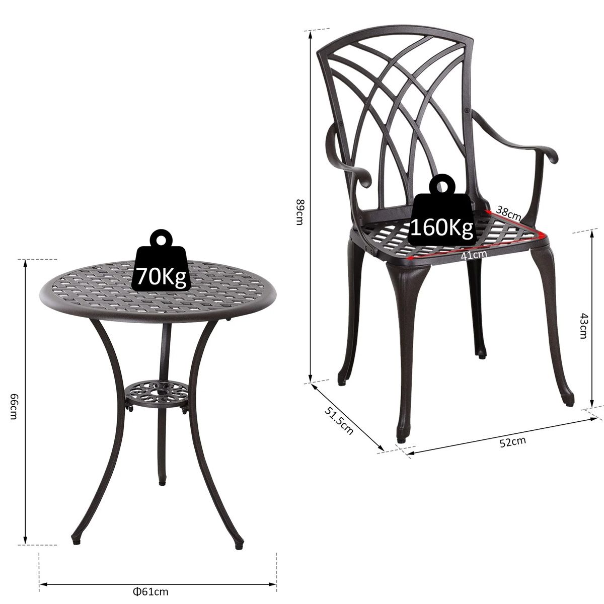 - Max Load: (Table)70kg, (Chair)160kg