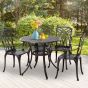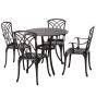 Cast Aluminium 4-Seater Outdoor Garden Table & Chair Set - Brown