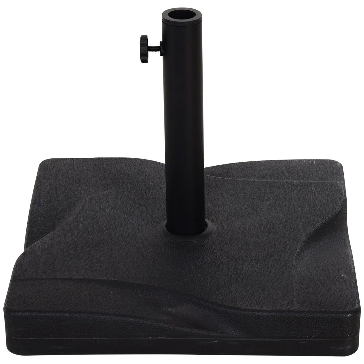 This umbrella base offers a decorative, high end touch to your outdoor living space while also performing a necessary task of holding your umbrella in place. With an attractive decorative sunburst pattern and black finish this piece adds charm and elegance to any patio. Made from poly resin, this piece is rust-resistant and made to last for years. Set up your outdoor patio today with a beautiful umbrella and keep it secure with an umbrella base.