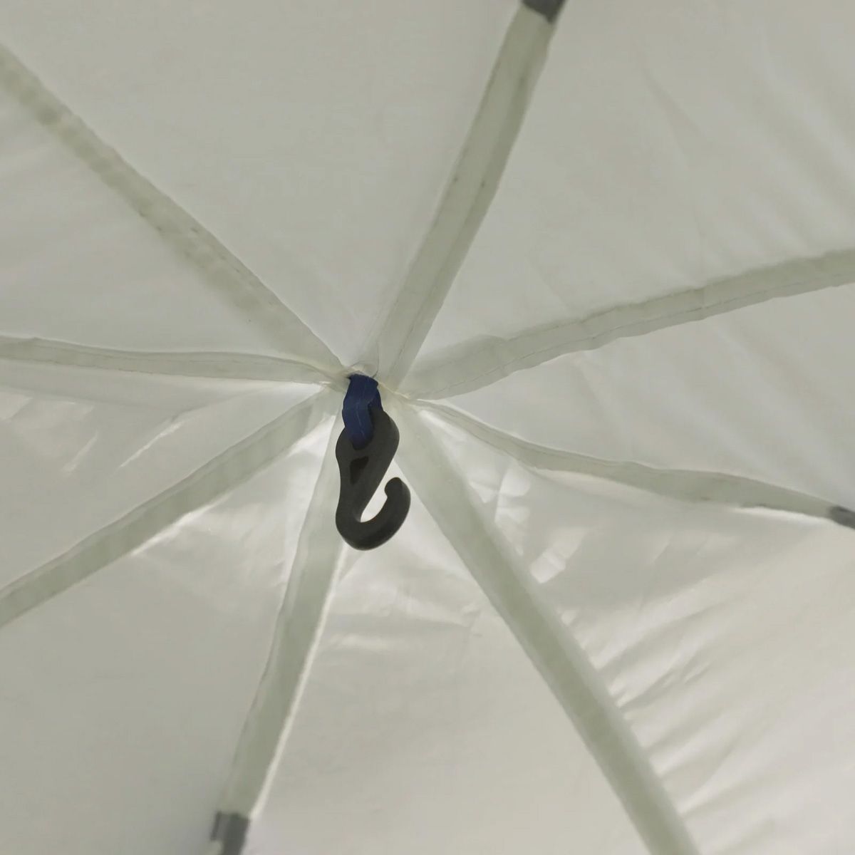 Quickly create a cool and comfortable outdoor space with this dome shaped outdoor shelter. This 3.5x3.5m canopy sets up in minutes and deliver ample shaded area for you and your family members or friends. Canopy with PU coated polyester fabric blocks most harmful rays and light rain. Designed with wind resistance its sturdy fiberglass construction ensures high stability under wind condition. Top includes one hook for hanging your outdoor lantern so you can get lighting in nighttime. A perfect tent for any outdoor events farm markets wedding party street markets sporting events flea markets BBQ home party garden show etc.