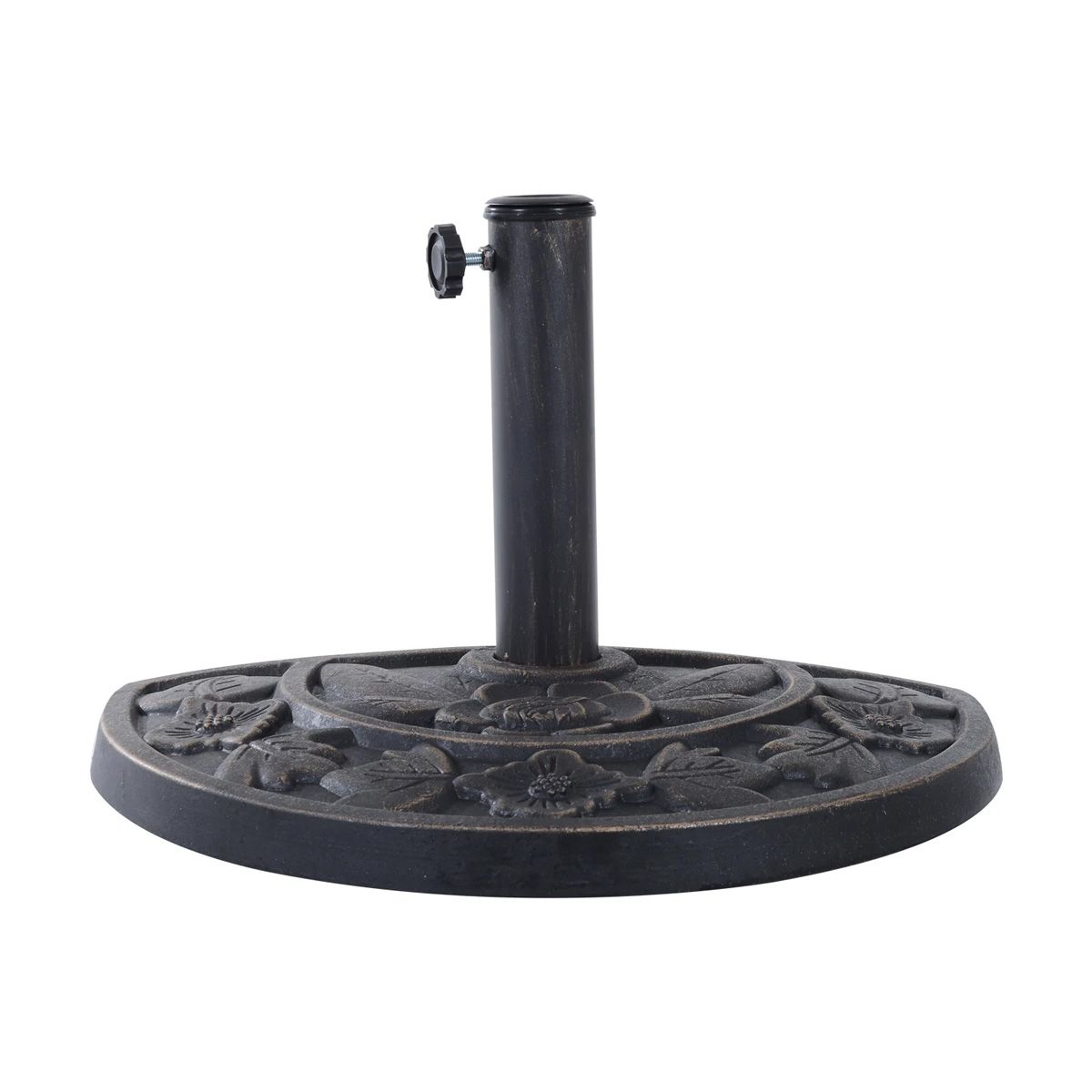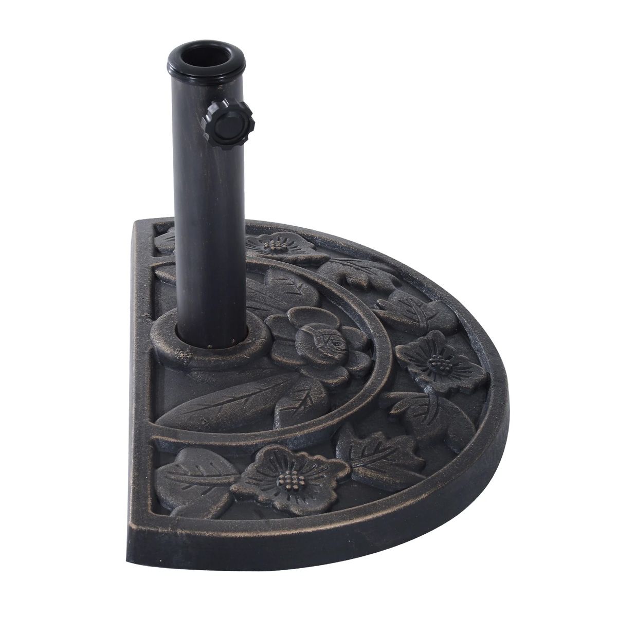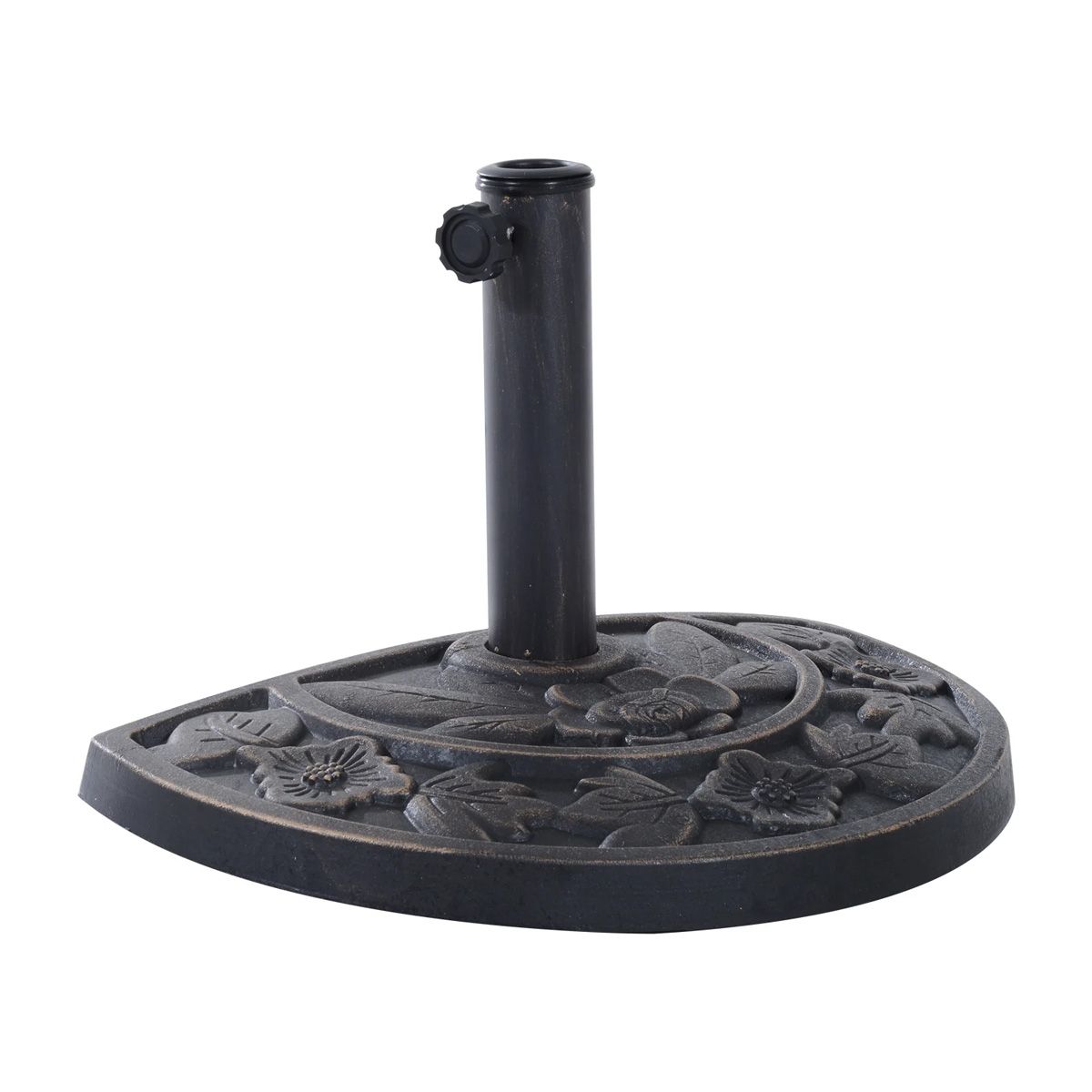 This half round parasol base is a great accessory to have to accompany your half round parasol. Design to work perfectly this this type of parasol, it will be able to reduce the amount of space it takes. The base has a flower pattern to suit any outdoor setting, it holds the umbrella pole securely and evenly in place. This is a necessary item to have to complete your outdoor setting.