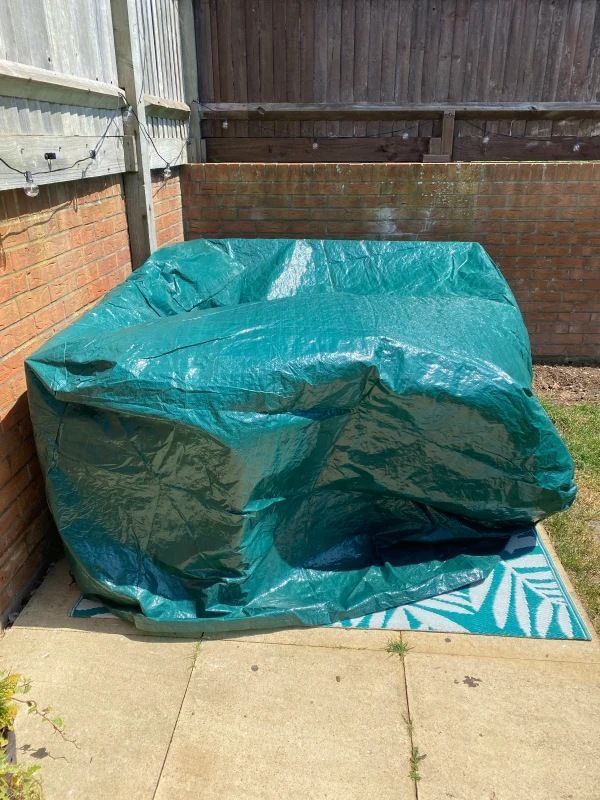 Keep your outdoor furniture protected in all weather conditions with this cover. Made from heavy duty plastic, it has tightly stitched seams to ensure that no water and residue seeps in underneath, with a drawstring and eyelet fastening to keep it secure against the wind. It has also been treated with a top coat that protects against UV rays, meaning your garden furniture is protected in the summer too. Sized at 235 x 190cm, it will cover your furniture with ease and is suitable for square, rectangle and oval shaped pieces.
