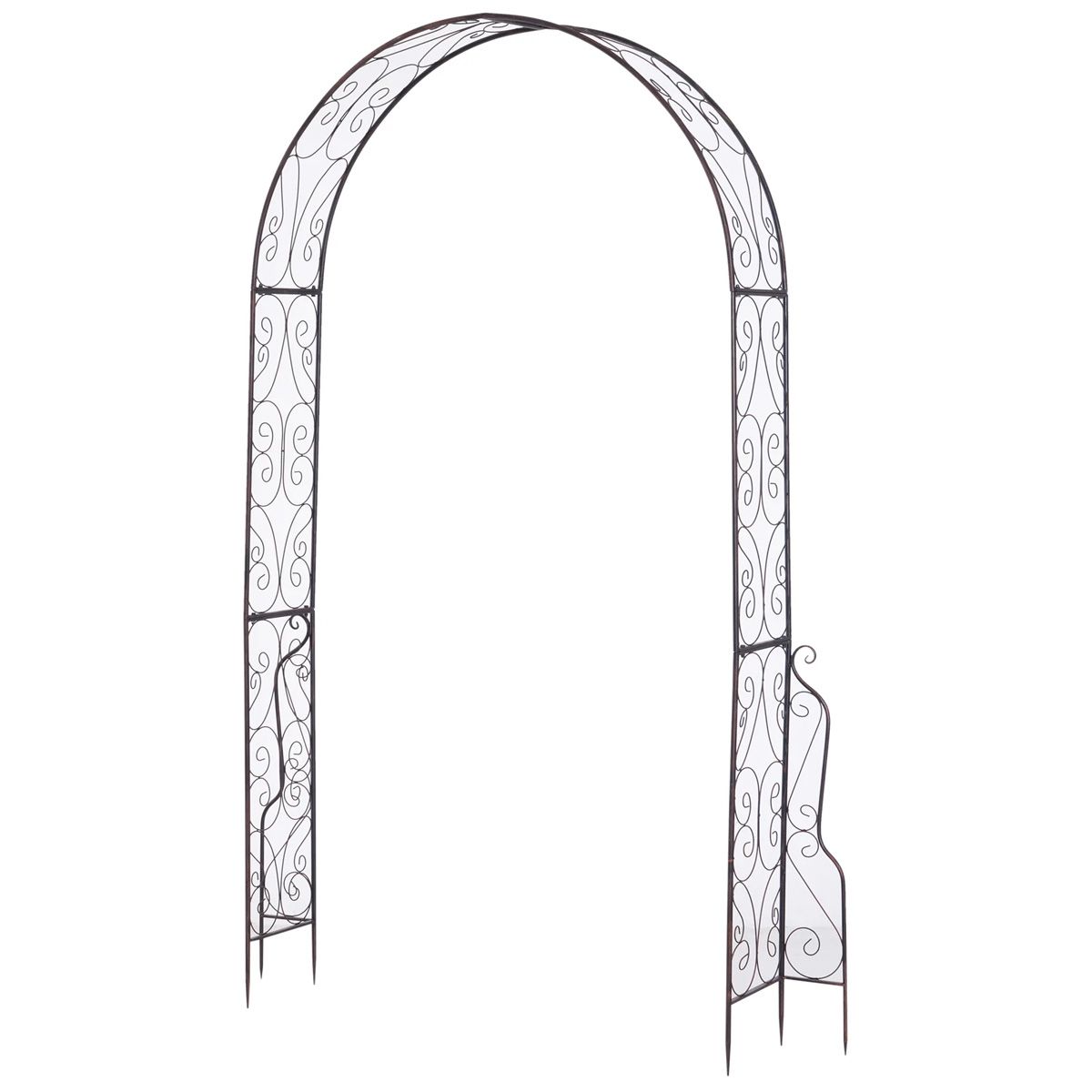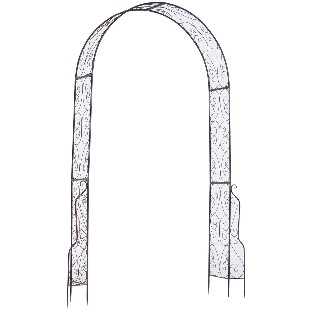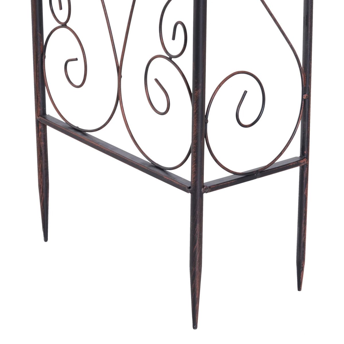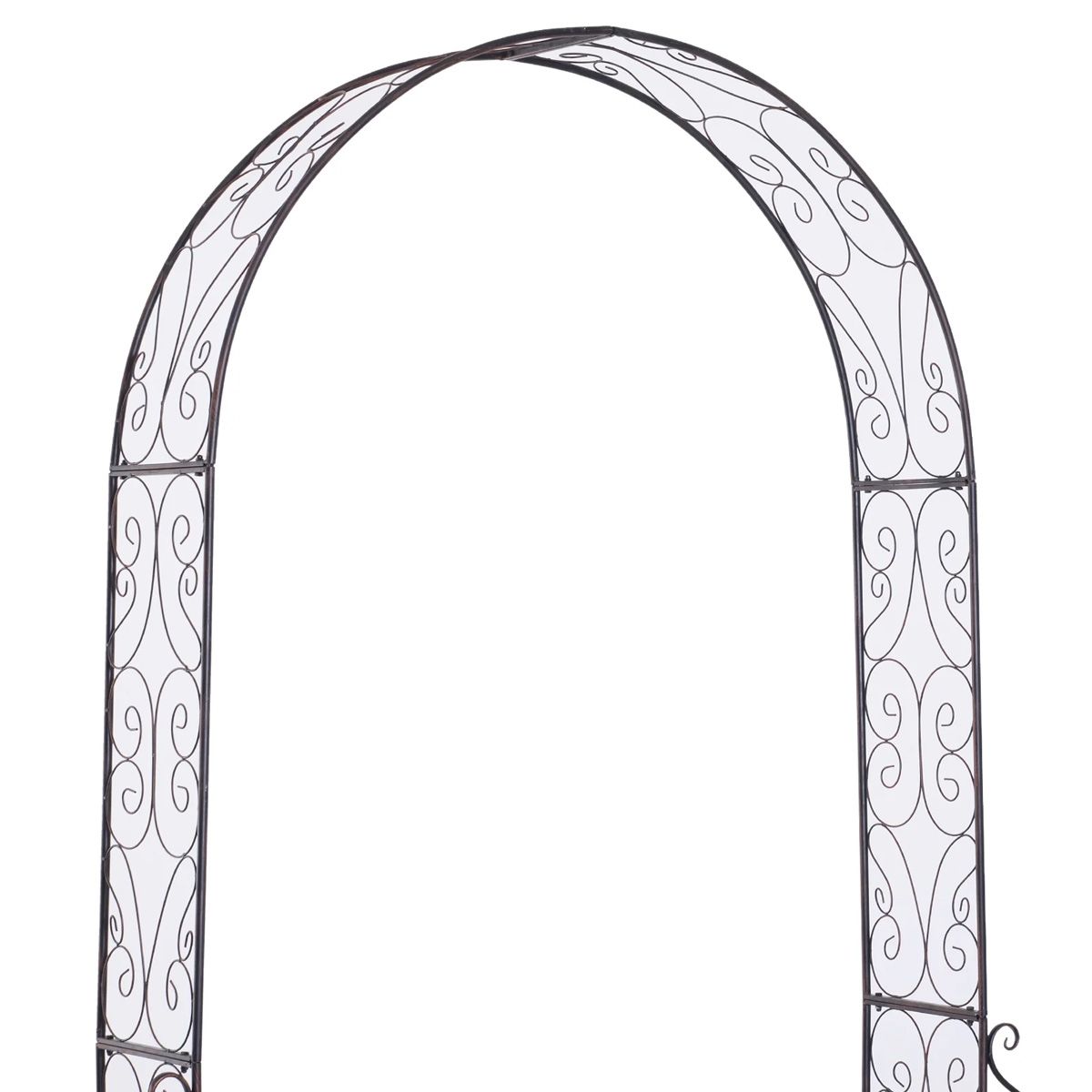 Create an enchanting and unique entryway with this arch. Made from metal with a black epoxy finish to ensure stability and durability it has been crafted in a beautiful scroll design that supports climbing plants and vines allowing them to grow easily and naturally. The top is also sturdy enough to hang potted plants and flowers on allowing you to create a beautiful surrounding whether it be for your garden patio or for special occasions such as weddings and summer parties.